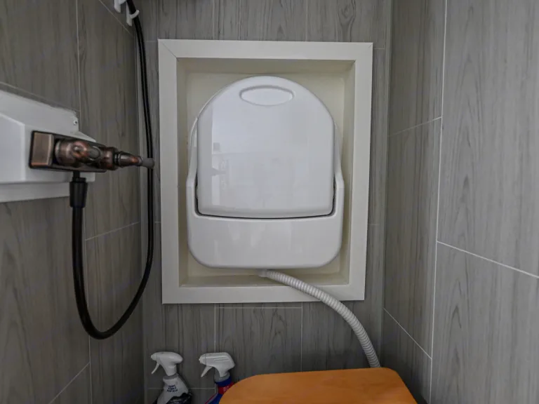 Shower with body wash, shampoo & conditioner, plus Trelino portable composting toilet.
