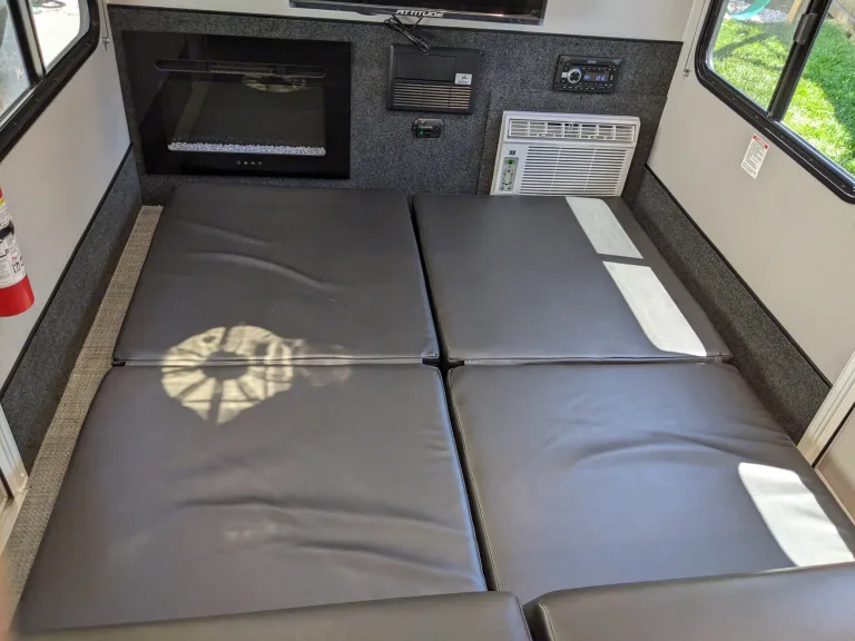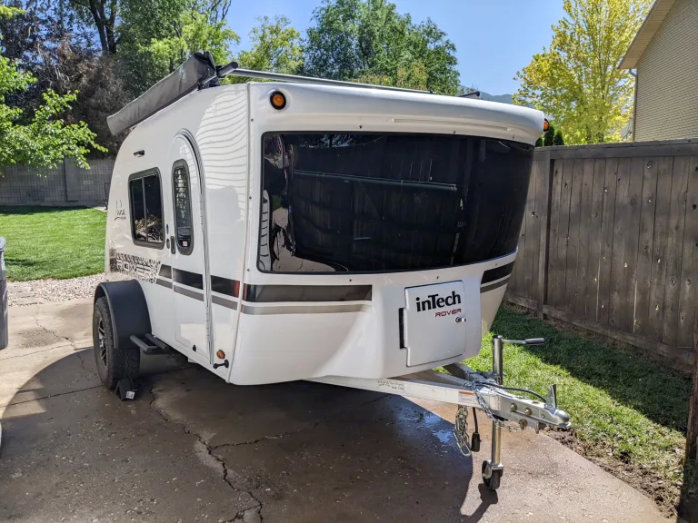 Brand New InTech teardrop! New trailer smell and massive front window to let all the pine tree/red rock/lakeside scenery in! Features doors on either side of the trailer for easy entry or exit. Equipped with awning, AC, heat, Max Air Fan, roof rack, TV with Blue Ray/DVD/CD payer, Bluetooth stereo for indoor/outdoor ability. Roof rack, outdoor kitchen with stovetop for all the bacon aroma. Beautiful blue accent lights for the perfect campground ambiance!What's included-Fresh linens for each fold out cushion