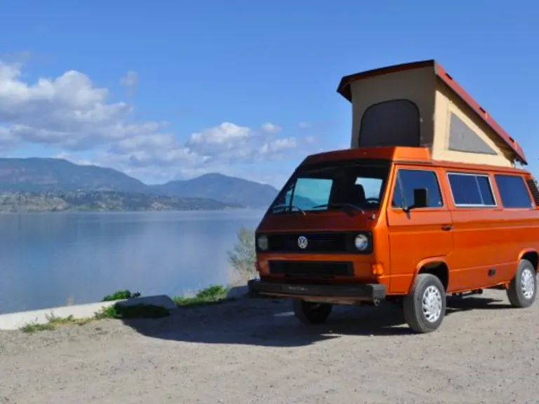 The Volkswagon Westfalia camper sleeps and travels 4 people in the ultimate German design and comfort. It has 2 full beds, a kitchenette with 2-burner gas stove, sink with water pump and 10.5 gallon water tank. The Volkswagon camper comes with pop-top roof with skylight, some with 3 window canvas, an easy-sliding door, large window for sightseeing, plenty of cabinet space, a hanging closet for clothes, and sound system with AM/FM CD player with USB or I-POD input. Rotating front seats, a dining table, electric hook ups, propane tank, privacy curtains, and fire extinguisher.Each Van has gone through an extensive restoration, starting with a Subaru 2.2 engine conversion, for better reliability, fuel economy and added power to keep up to traffic on hills and passes which other Westy's dread. The bodies have been massaged over and painted to look like they just came out of the factory, tinted windows for privacy and to stay cool, and laminent hardwood flooring for easy cleaning.Every unit is equipped with all the cooking essentials , so all you need to do is pop the top and you are all set for camping!