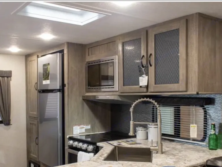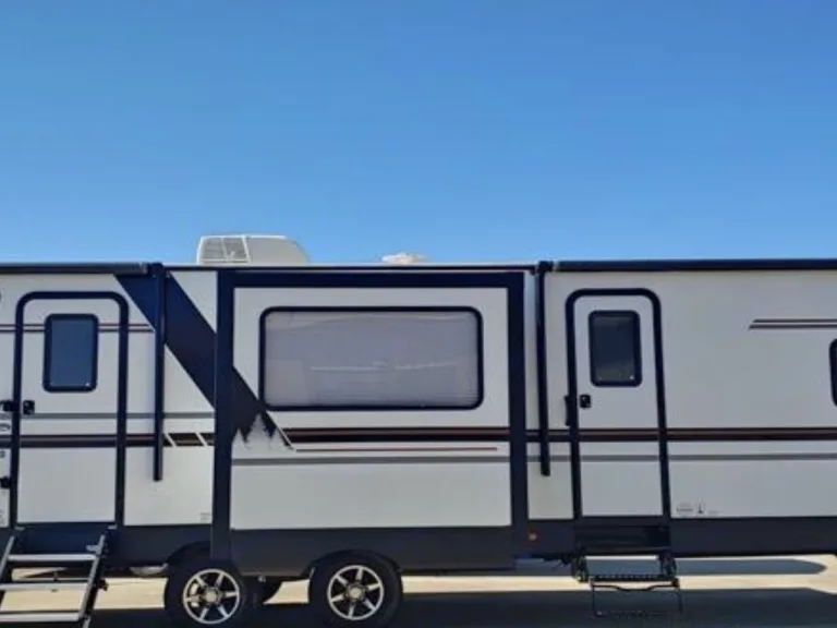 2020 Forest River Vibe travel trailer that can sleep up to 6! *Please contact to get delivery fees, if delivery is needed. *One bedroom with a queen bed and living room with a pull out sofa and a dinette area that converts into a bed, sleeps up to 6 guests. There are two slideouts that create a spacey main living area. This is a rear kitchen RV with sink, microwave, oven, 3 burner gas top stove, island area with seating, fridge and freezer. Private bathroom with shower, sink and toilet. Living room has two recliners and a sofa as well as remote controlled fireplace/dvd player. Wifi capable smart TVs in living room and bedroom. Power retractable awnings outside. Outdoor kitchen with mini fridge, water hose, and electric burner. There is an outdoor shower as well. Propane heat and two A/C units. Pets are allowed, (as we are animals lovers they stay free ! ) no size, type, or breed restrictions.Large but lightweight RV, it is 7188 dry weight.We do offer long term rentals. Please inquire. What's includedRental will have clean linens to include : Towels, wash cloths, sheets, blankets, pillows.