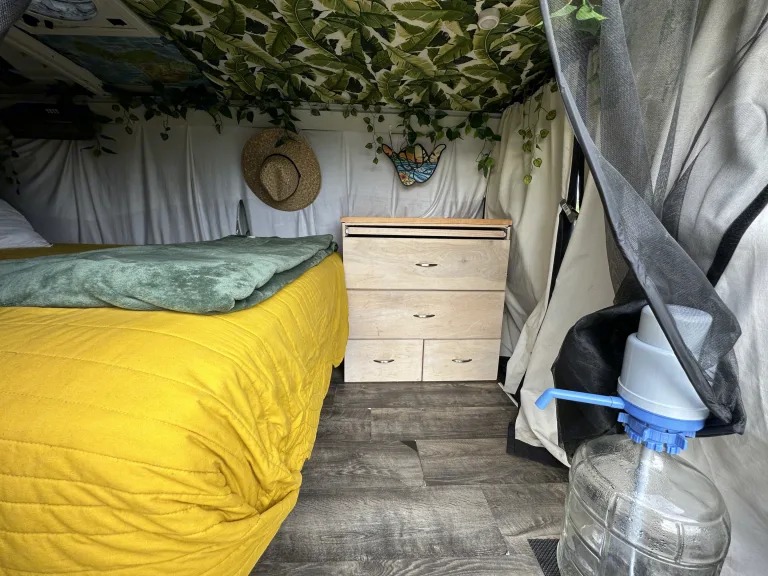 This van houses a classic esthetic vibe that will take you where you want to go on Maui. Travel in comfort and steeze in this streamlined, simplistic rig. We decked this thing out with an entire amenity pack of literally everything you need with no cost added.