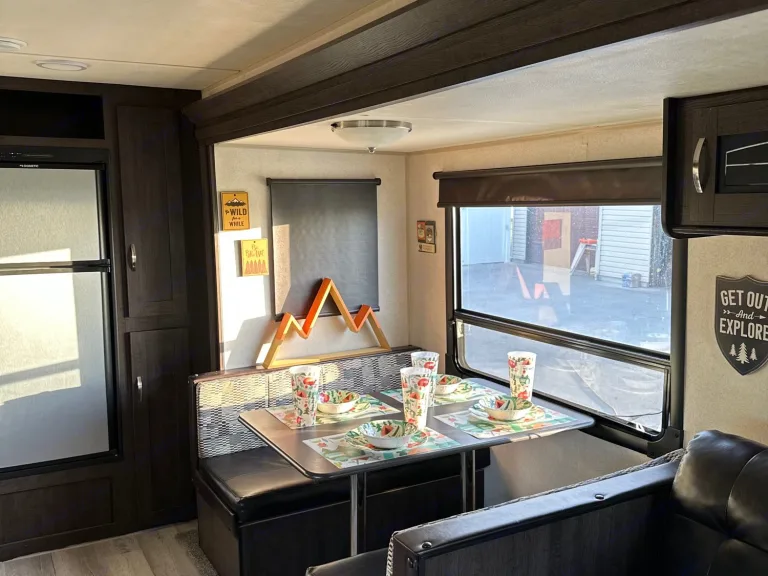 This beautiful home away from home is yours to enjoy with your little family. This trailer is perfect for up to 6 guests and a fur baby. You will find everything you need in this trailer just bring your clothes, and food and you’re on your way.The rv will be stocked with everything need for 4 people, extras can be added. The trailer includes camp chairs, everything needed to cook, bathe and relax.You will find board games to help entrain your family as well as stuff for s’mores. We want you to have a memorable trip and we hope to be apart of that. Other things to noteThe trailer is due back at 12pm.