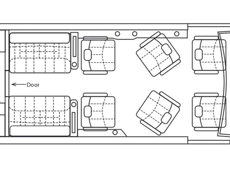 Designed more for family use, there are six beautifully plush captain’s chairs and the bar has been removed to allow more seating. All passengers travel in comfort and style whether it’s a weekend excursion with family, a week-long vacation with grandparents and kids, or golfing with friends.The spacious interior of the Presidential is truly amazing. The classy Maybach ceiling allows plenty of headroom for passengers to freely stand up and walk around. Middle captain’s chairs swivel so guests can either face forward, or turn around and have a conversation with passengers in the back. It’s perfect for all occasions–both in a family configuration or transformed into a limo for a night on the town. The third-row of captain’s chairs have power footrests and fold-away solid wood lap tables–great for relaxing, reading, working on a laptop, playing games or watching TV on one of the flat-screens. And, let’s not forget the two comfortable couches in the back that make a bed for a quick nap or an overnight excursion. There’s even a large dorm-size refrigerator conveniently tucked away but within reach for drinks and snacks while on the road.