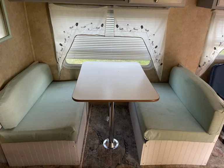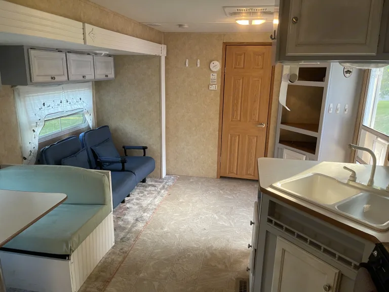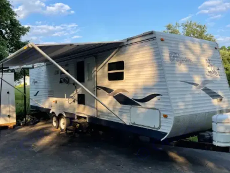 Come and enjoy our camper, you will be pleased to know there are two large slide outs to give you plenty of room inside! It also has a huge awning to provide shade during the day outdoors. As you walk in you are greeted by a large family area with two recliners (that also turn into beds) to watch TV. To the right of that is a private master bedroom that features ample storage space and a queen size bed. Beyond the family space is a full kitchen. Featuring a large eating area with stools, double sink, microwave, stovetop, oven and large fridge and freezer. No need to worry about cooking supplies as there are pots, pans, flatware and other kitchen amenities. Within the kitchen is a large dining table (that also easily changes to a bed). At the end of the hallway you will find the back bedroom that includes bunk beds for your kids or guests. The bottom bunk also can be converted into a couch or bed depending on your needs. Across from that bedroom is a full bathroom with a large shower, toilet, sink, mirror and medicine cabinet. No need to worry about packing towels as there are plenty for all of your needs. We do recommend packing pool/beach towels to use outside of the camper though. Camping kit with all s’mores needs included.What's includedFresh linens included