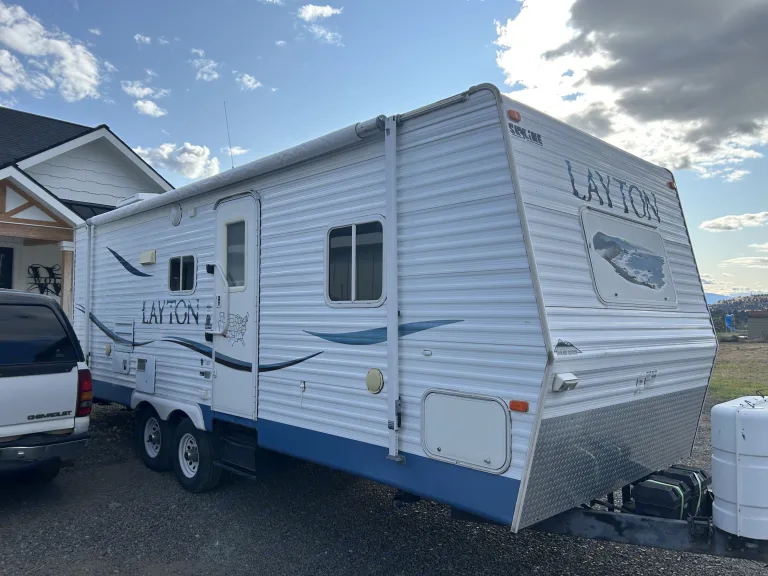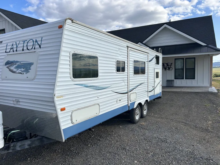 Unique trailer that will accommodate the whole family, Has bunk beds in the back, dinette that makes into a bed, couch that folds down in seconds and a front private queen. Dinette slides out for tons of room. Has 3 burner stove, microwave, fridge-freezer combo. 30 Amp plug in for shore power. Spacious shower and porcelain toilet. This trailer weighs 5920lbs dry and can be towed safely with a 1/2 ton truck. Hitch and load levelers are available to use if needed. Come start your adventure todayWhat's includedTank dump hose, fresh water hose, hitch and load levelers, few camping chairs and if going off grid, 2 Honda generators can be rented