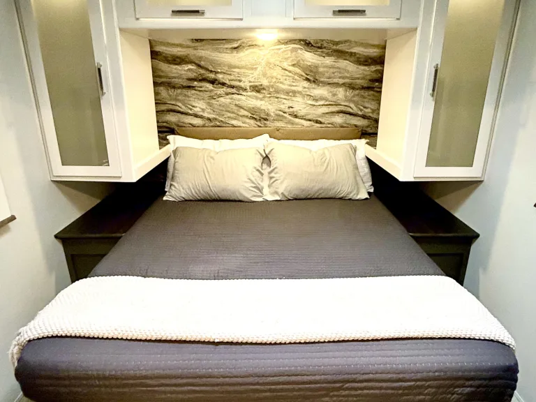 • A private queen bedroom with a plush bed for ultimate relaxation