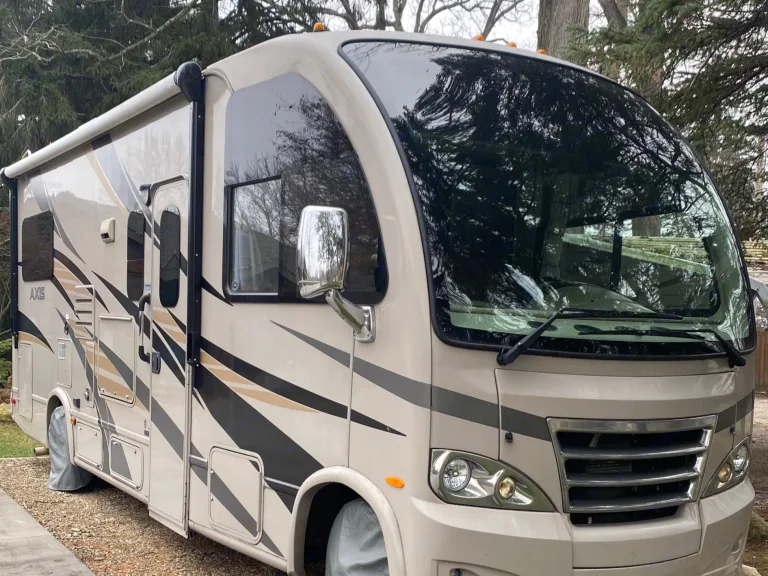 This unit features a single slide and has sleeping space for five individuals comfortably.As you enter the side door there is a 29" TV directly above your head. To your immediate left is a round kitchen sink, three burner range with microwave oven, refrigerator, and storage closet.Straight in through the door is a slide-out hide-a-bed sofa with air mattress bed, plus pedestal table for dining. The pedestal table can also be used between the driver and passenger seats swiveled toward the center creating a cozy breakfast nook too. The slide provides even more space to move around when fully extended.Moving toward the rear of the coach you have a complete bath with shower, toilet and sink. The bath door can be opened further than normal with its bi-fold hinge and positioned when open to block off a larger space for more privacy when dressing.The very rear of Axis model 24.1 features two 38" x 75" beds with a small nightstand between with storage below. Add a cushioned insert if you don't want two separate beds to create a 75" x 91" king size bed if you like.There is also a 39" x 74" drop down overhead bunk above the cab area for added sleeping space as well.You will love having 63.5 cu. ft. of exterior storage space with the rear Mega Storage system and more for all of your larger gear when traveling.And there is an exterior 32" TV.What's included4x camp chairs, camping table, linens, cookware, utensils, outdoor rug/mat, grilling utensils, and hammock with hammock stand. Airport pickup from South Bend International available upon request.