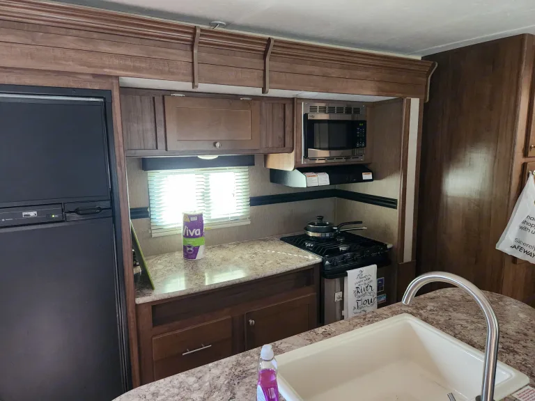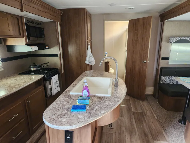 2018 Dutchmen Aspen Trail. Beautiful modern rv. This travel trailer sleeps 4 to 6 people. Has 4 seater table and sofa. Private bedroom. Full kitchen. Private bathroom. Living room entertainment includes LG TV, indoor and outdoor speakers. Outdoor amenities include electric awning for shade, and storage area with basic camping supplies.What's includedwater, linens, towels, camping chairs, cooking utensilsRecommendationsplease follow the rv rules and instructions...if any questions arise please call meabsolutely no smoking inside the rvOther things to notehave a great time! please treat the rv well