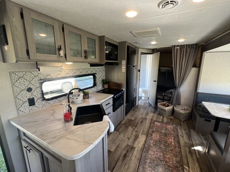 - **Relaxing Amenities:** Enjoy a spacious stand-up shower and on-demand hot showers with our tankless water heater.