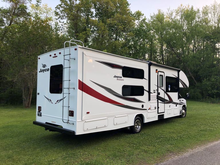 2018 Jayco Red Hawk. Bring the Whole Family- sleeps 10. Faux Leather front seats, dinette bench seats, and couch with seat belts to make for an extremely comfortably ride to your destinations with the whole family. Easy and comfortable coach to drive with power driver seat. Complete with on-board generator that will power the entire coach at any time. . Several folding camping chairs, and folding table included for outdoors. TV with digital channel receiver that picks up to 60 channels. Full built in GPS navigation system. Surround Sound system. Take the cross country trip you have been dreaming of, use for a weekend getaway or take to the big game for an incredible tailgate experience! Tons of storage for your luggage, gear or anything else you would like to bring along. Book Today for the best experience of your Life!