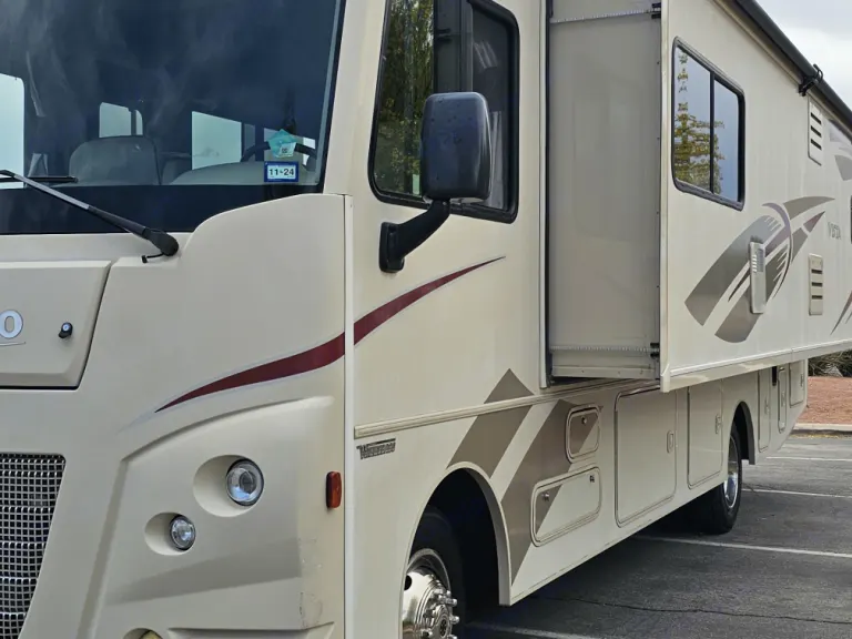Take camping to the next level with our Beautiful Winnebago Vista Luxury Class A we lovingly call the" Lady Luck." Because you don't need a special driver's license to drive a Class A vehicle, you don't need to worry about roughing it; "Go Glamping" with this fabulous RV! She's Fun and Easy to drive! Your Vegas Adventure comes with nearly all the amenities of home. We provide bedding, bath and kitchen essentials, TV’s, DVD player, camping chairs and BBQ basics, all the conveniences you'll want to make your vacation enjoyable and memorable at no extra charge. We go the extra mile to give you the comforts of home so you can feel like it's your RV. This Beautiful Luxury Motor home features a Queen size bed in the Master bedroom, with plenty of room for everyone you won't feel cramped. The sofa converts into a futon bed and there’s a hidden overhead powered studio loft bed. Across from the sofa is a booth dinette for mealtimes which can also convert to a sleeping area. The galley features an open floorplan that gives the entire coach a more spacious feel. Enjoy hassle free meal prep with easy access to the microwave oven, 3 burner range with oven and refrigerator/freezer. There is a 40" LED TV above the dinette that can easily be viewed from the sofa opposite. The fully adjustable drivers seat pulls double duty as a comfortable lounge seat while easily turning to face the living area alongside the passenger seat. A passenger dash workstation with USB and 12-volt outlet helps you stay connected no matter how far off the beaten path your travel takes you.