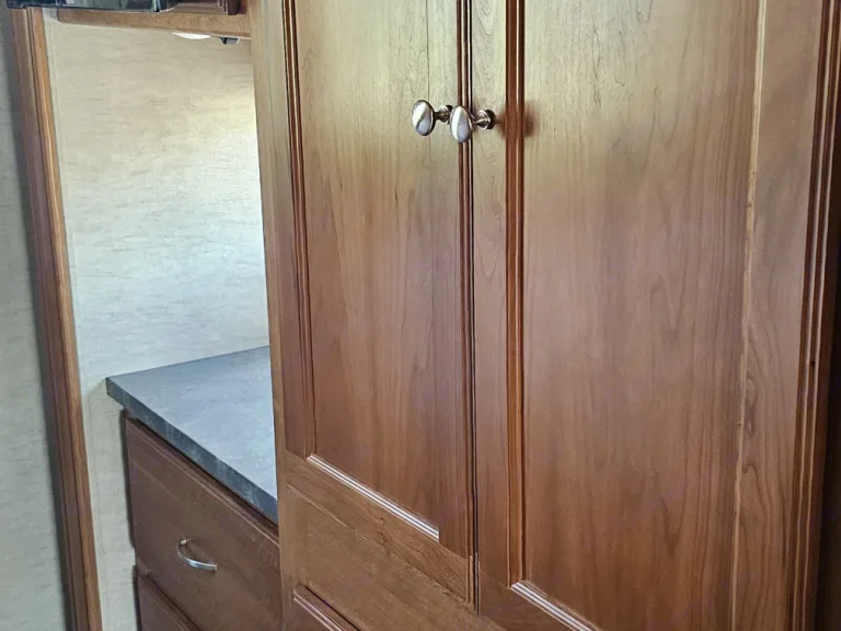 One of the nicest features is the tailgate package with outside kitchen with a refrigerator and sink and propane hook up for a grill.