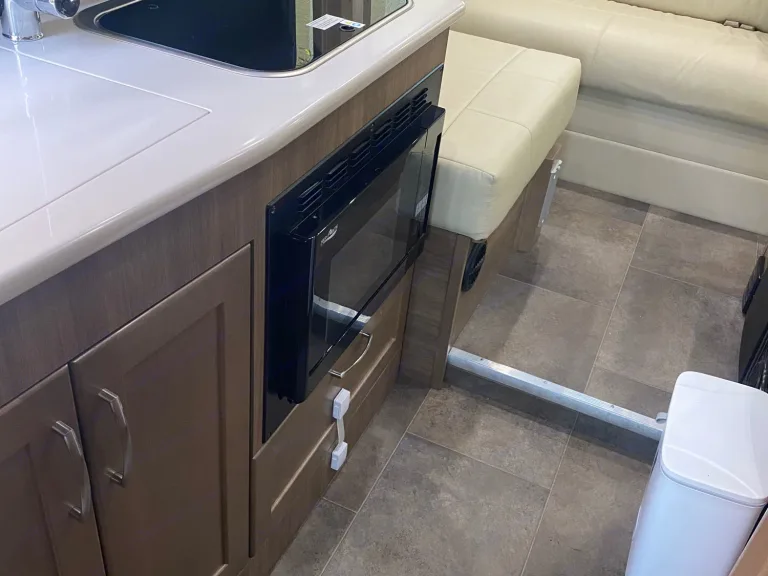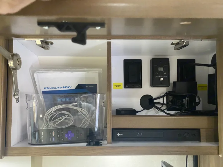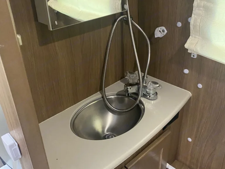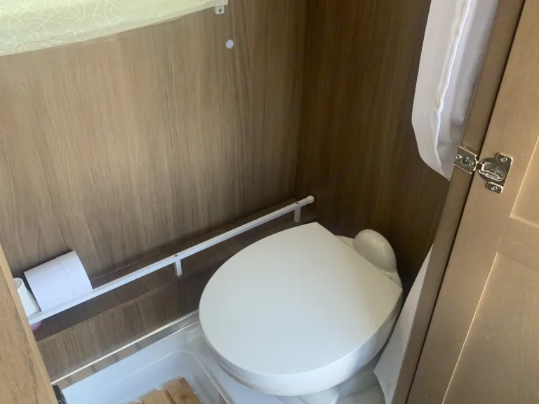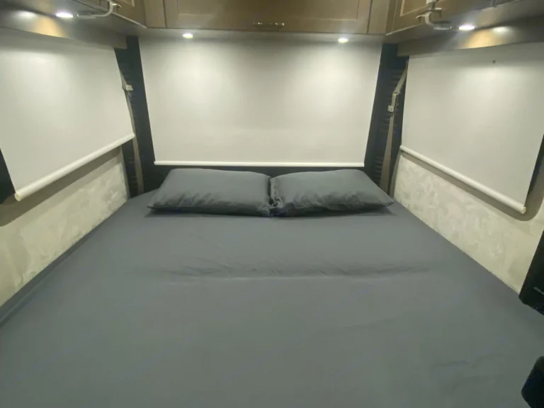 Full wet bath, power sofa turns into queen sized bed with an optional blow up mattress for someone to sleep upfront. Super comfortable bed.