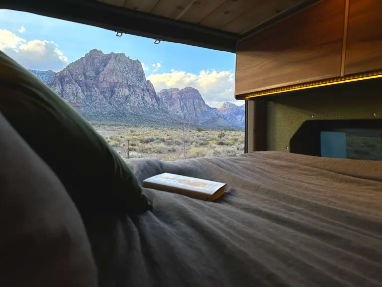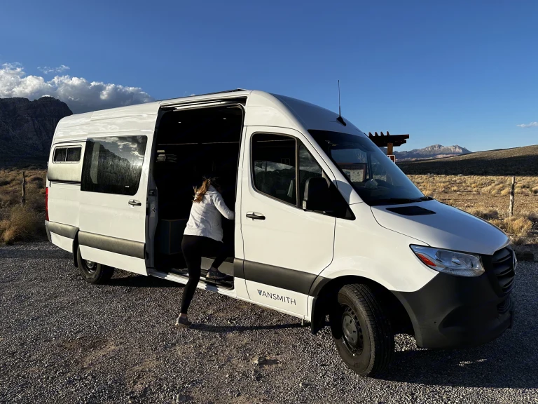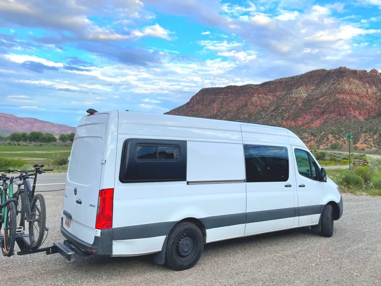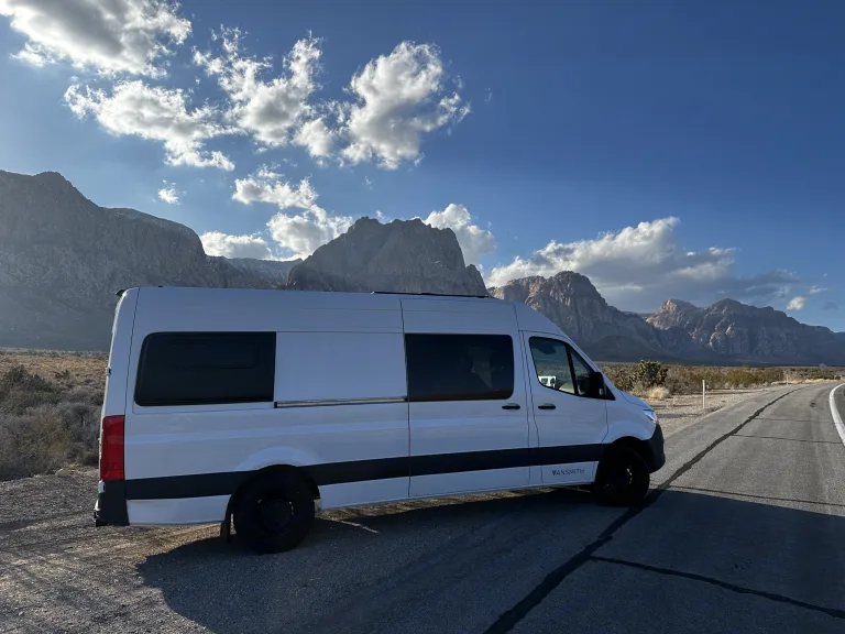 This is our mint 2021 Mercedes Sprinter, 170 wheel base (extra long), high roof luxury adventure van. Featuring a custom, professional conversion fully equipped with a queen-sized bed, sink, induction stove, toilet, outdoor shower, ventilation and heater, swivel captains chairs, table/dining area, and 2 extra bucket seats perfect for kids or extra passengers. Tons of storage space in the main galley and in the garage for all your adventure gear!This rig is also jam-packed with high end components. Leather seats, birchwood cabinets, and a handmade bamboo countertop. All the cabinets and drawers have soft close doors and custom trims. With the whole Mercedes electronics package, you get Apple CarPlay (great for navigation) and all your favorite apps right in the dashboard touch screen.Our van has a complete electrical and solar system to power all your needs, even while you're off the grid. You can control monitor and control all your electrical from an app.This gasoline (cheaper than diesel) van is a dream to drive, with all the bells and whistles and perfect for your ultimate road trip.What's includedThe rental comes with 2 camp chairs, a camping table, all linens, cookware, and utensils.For a small extra fee, a bike rack and mountain bikes, camping gear, backpacks are all also available upon request in the add-ons section of the booking page. RecommendationsLas Vegas is the perfect hub for tons of adventures, with some of the world's most iconic National Parks, Lakes/Rivers, and Attractions. Each of the below destinations has designated RV campgrounds and parking areas.Zion National Park is 2.5 hours.