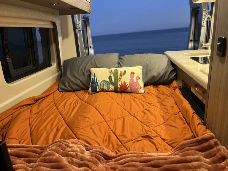 The van drove really well. The large bathroom was excellent; we didn't feel cramped at all, showering nor during our morning routine. The medicine cabinet was a cool surprise. The kitchen provided plenty of working space. Loved that there were three positions for the Lagun table. In the front, we could stage our stuff for the day's activities. At the back, it provided additional counter space to spread out even more, for meal prepping. Moving it to the center, created a nice little table to eat at. There were plenty of storage cabinets for our stuff. We also had plenty of water, with some to spare - “Navy showers". Lastly, the heater worked really well. We tried sleeping in the pop-up, but at 6 foot plus, I was a bit too big for comfort. Carl was super responsive during the trip. There were a few small things that keep me from rating 5 stars. The TV is partially blocked, from the back of the van. Needed just a little more power - we couldn't use our electric kettle nor our waffle maker at the same time. Two of the larger cabinets could've used some shelves, to be a little more functional.