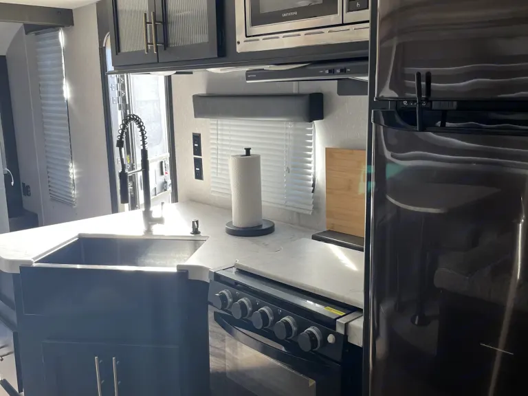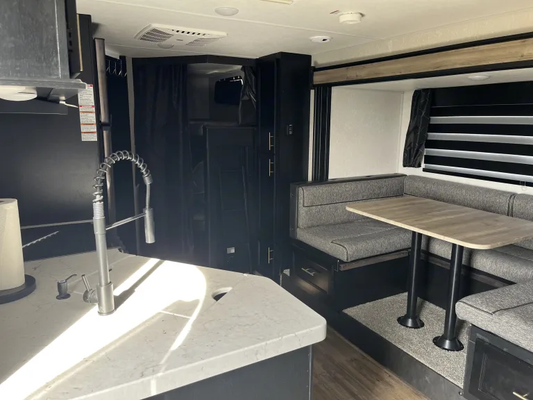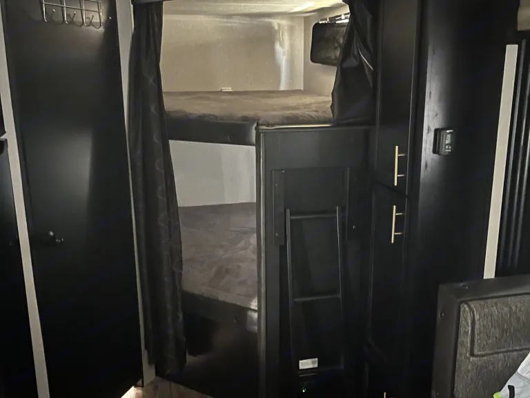 Enjoy the great outdoors by taking the entire family with this bunkhouse travel trailer! What's includedFresh linens, towels, K—cup coffee maker, fully stocked kitchen, tabletop griddle, camp chairs, folding table, a few family games, outdoor rug, 10x10 pop-up canopy, retractable awning, outdoor fan, & a TV. (The TV is not shown in the pictures)Delivery, set-up, and pickup availableRecommendationsWe have enjoyed many local campgrounds as well as some out of town. Please let us know if you need recommendations for where to travel or what site to choose. Other things to notePets are welcome!NO smoking/vaping