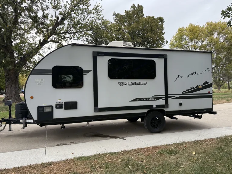 Life is busy, we all know that. Let us take care of your stocking and preparing for your next nature-packed getaway! Small and easily towable with a SUV, Cross-over, midsized and or half-ton truck. The camper weighs in with a dry weight of 4,127lbs. The Forest River Wolf Pup is a great way to get back to nature, spend time with friends and family, or enjoy a weekend of tailgating. The camper features 1 queen bed, 2 single bunk bed, and a fold-down dinette that can sleep 2, for the capability of sleeping 6 comfortably. This has a spacious fridge and freezer, microwave, kitchen sink, toilet, shower, bathroom ventilation, heater and air conditioner, tv, indoor and outdoor stereo with Bluetooth. RecommendationsBring your adventurous spirit! There is no limit to the experiences you can have, keep an open mind and get out there and explore!Other things to noteNo smoking/vaping