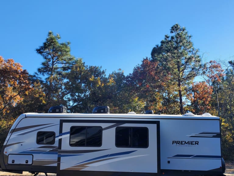 NEW 2022 Keystone Premier, this 29ft spacious camper has convenience and amenities for a enjoyable outing. If you are attending the Masters in Augusta, camping at one of our beautiful state parks, tailgating for a game, or need extra space for the holidays. This camper will not disappoint. This Keystone Premier was purchased new Feb 2022, and has all the amenities of a cozy weekend home for a family. The Keyston Premier interior has an electric fireplace, 50 inch tv, stove with oven, microwave, usb ports through out,pwr awning, pull out couch, bunk beds, queen serta mattress, indoor/outdoor audio system, 2 exterior entry and exit doors, dual AC units, and a foldable dinnette. The optional additional 13500 btu A/C unit makes hot summer days more comfortable. The exterior offers an outdoor sink,refrigerator, and power awning also. We also provide Dish Network Satellite TV at no additional cost........ Clean linen and towels are provided.What's includedFresh towels and linens included. Clean under CDC guidlinesOther things to noteAbsolutely no smokin and no pets over 25lbs