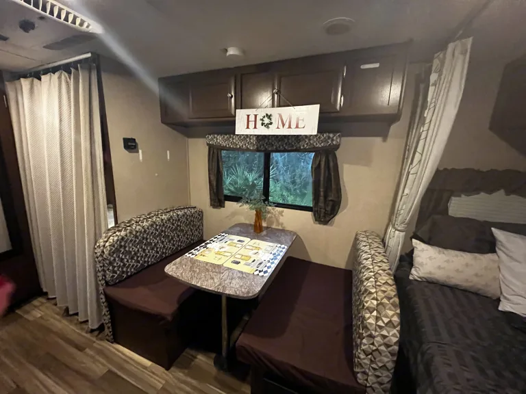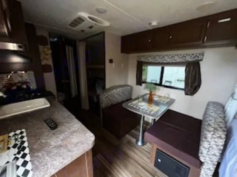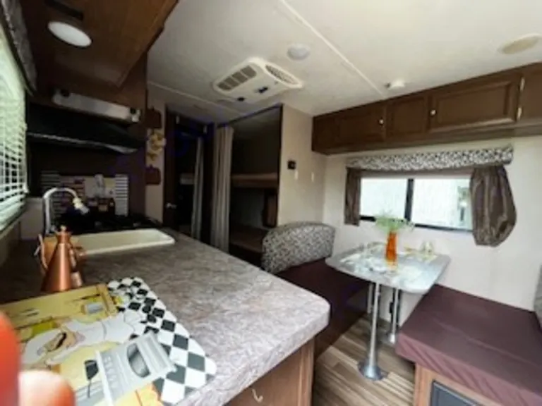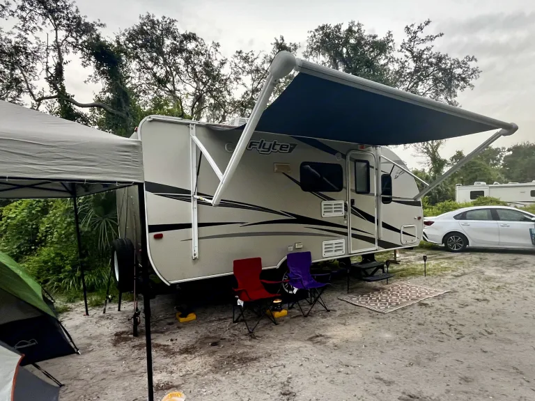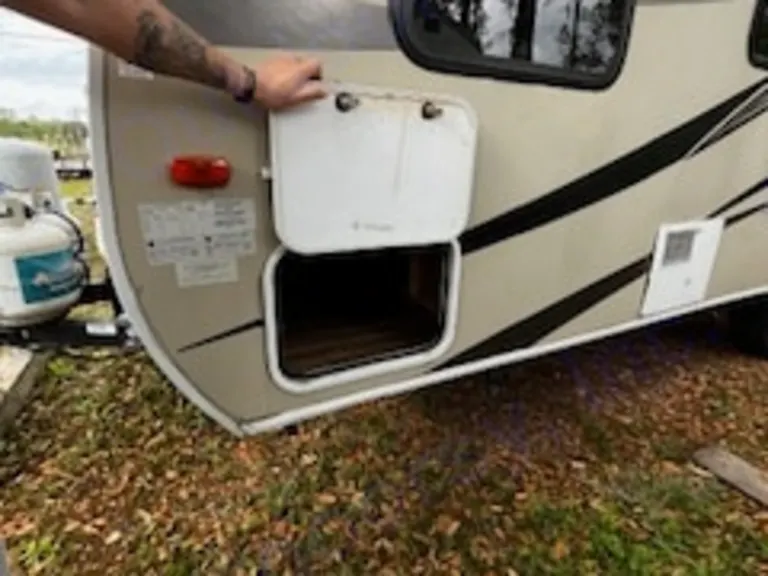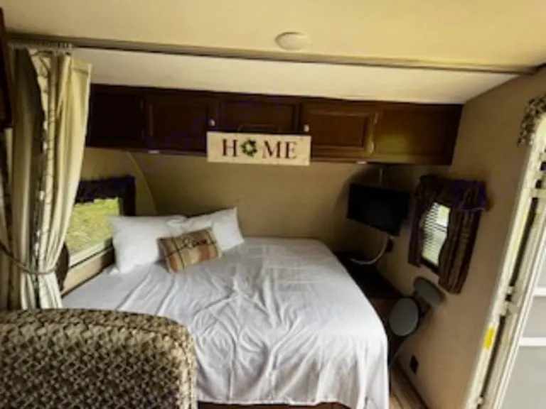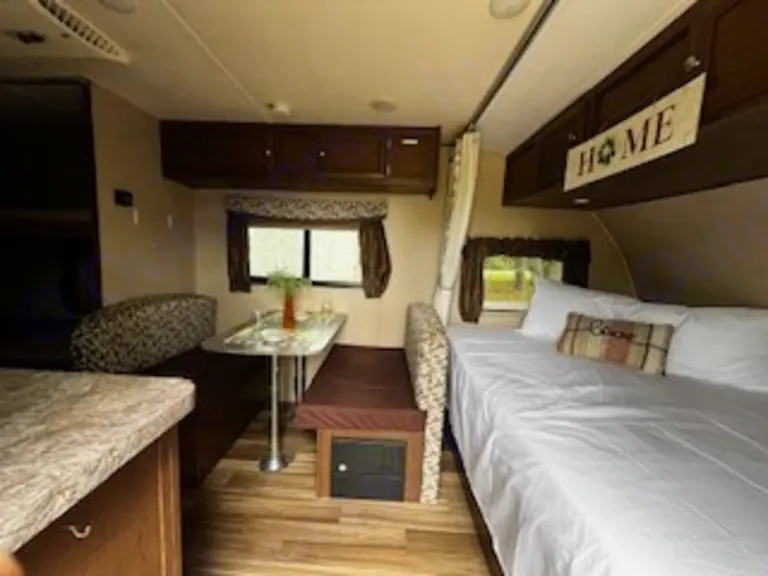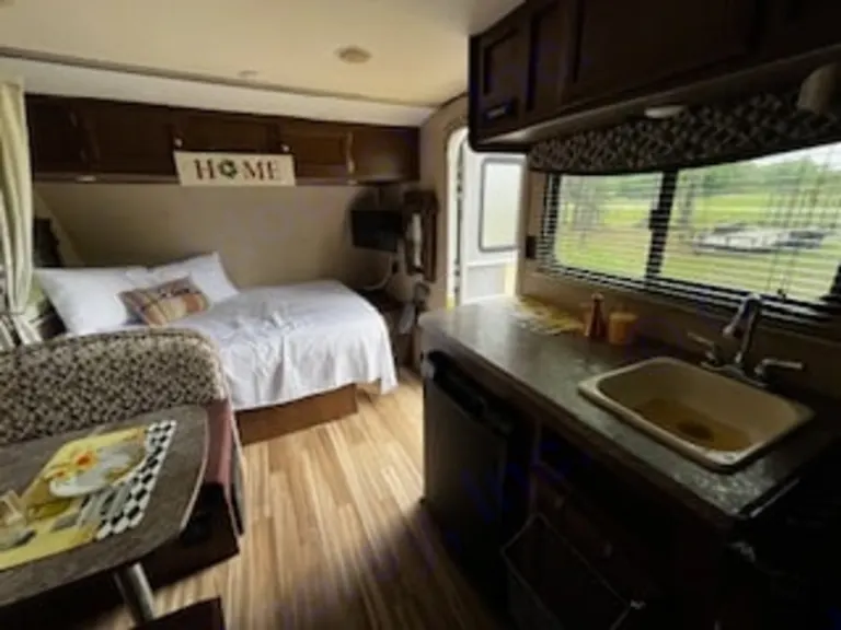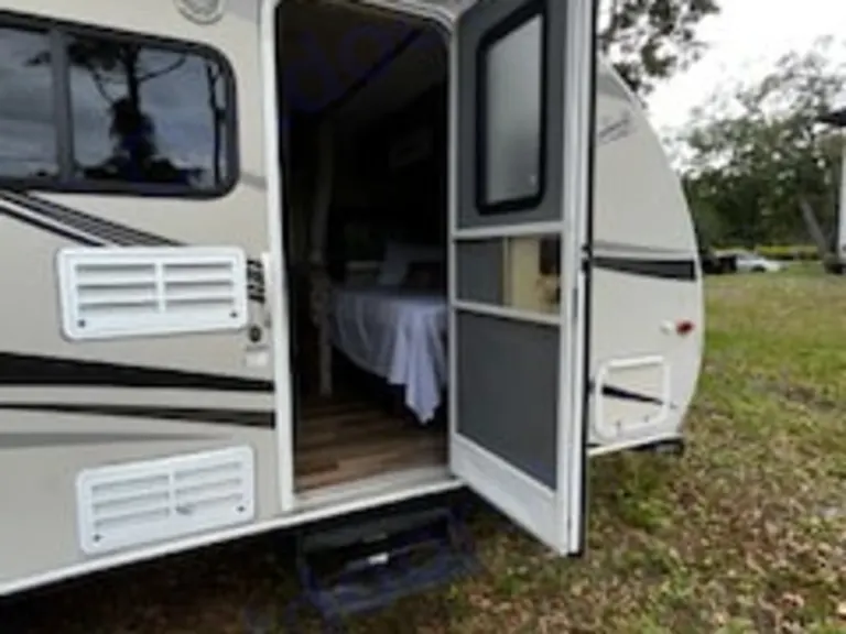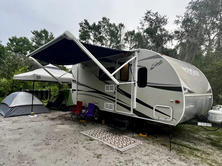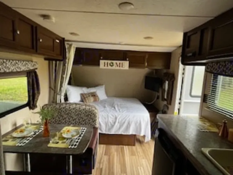 Welcome home to our little "Spirit Flyer", Ready for Family fun! It is light and easy to pull and can fit up to five people. This cute and cozy travel trailer comes with one queen size bed, bunk beds and a flat screen tv!There is a dinette, stovetop, mini fridge, microwave, sink, bathroom with a tub/shower combo.This trailer has outdoor lighting, an awning, hookups and electrical tow.For any questions please email or text us.What's includedOutdoor rug, two camping chairs, bed linens, bathing towels, dishware, cookware, hookups for electric, water and sewage. We have some board games, a first aid kit, outdoor table cloth, a hammock, broom and mopRecommendations• Little Manatee River State Park