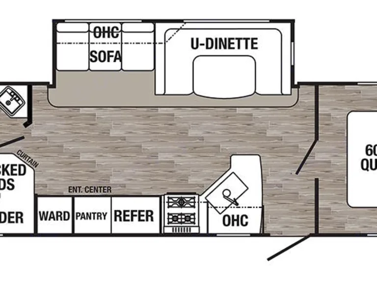 This 2019 Puma 27Rbqc comes Fully equipped with everything you need to go camping! Cups, plates, bowls, silverware, pots, pans, griddle, propane, grilling utensils, even an Outdoor Kitchen!!!At this time the only thing we DON'T supply are items that would touch skin. IE: Linens, towels, blankets, pillows, towels washcloths, etc.The master bed is a queen (which has a brand new 3" mattress topper and mattress encasement, and the bunks we typically just use a flat sheet with a blanket as RV bunks are odd sizes and shapes.