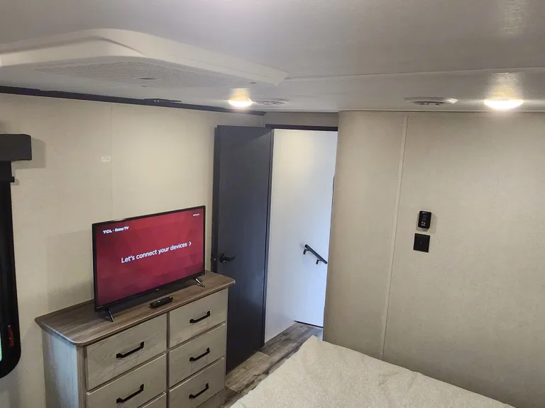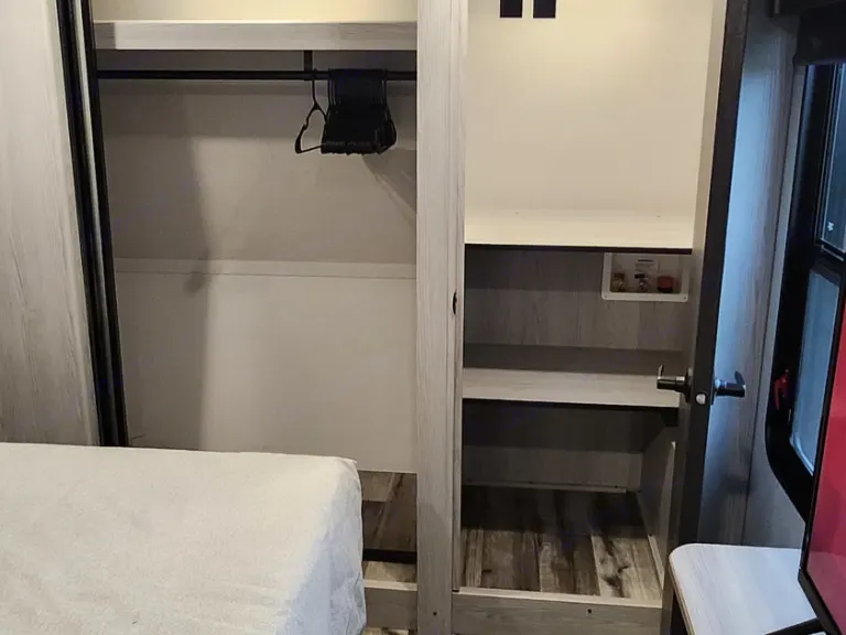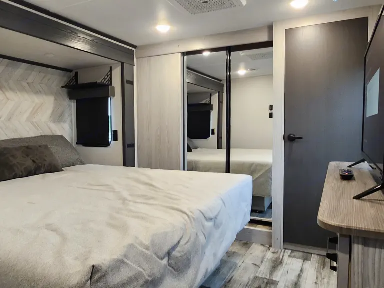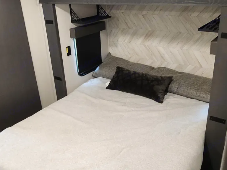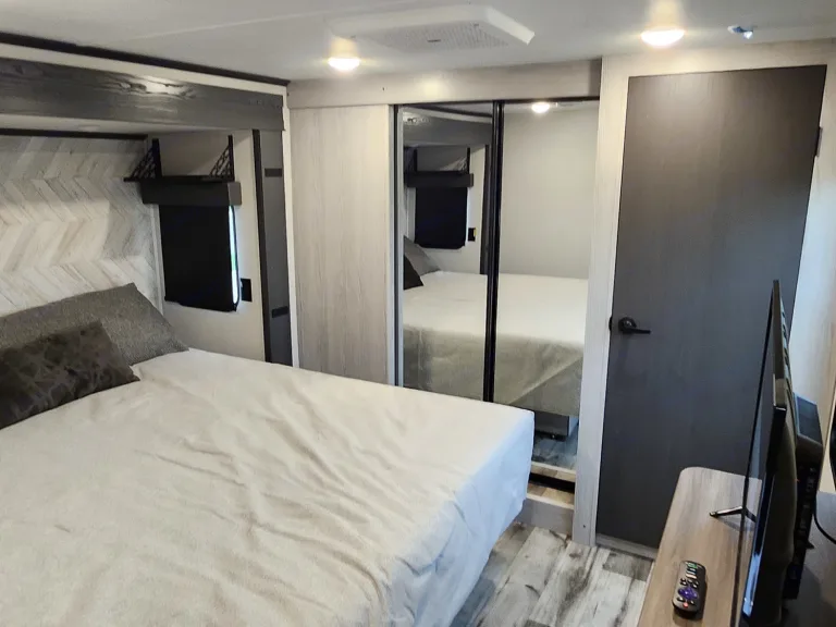 The second bedroom features a queen bed, lots of storage soace and a second Full bathroom.Above the 2nd bedroom is a loft space featuring 3 twin RV camp beds (small 2" thick mattress pads) with tons of light and storage space for the kids!Outside, you'll enjoy the large awning that provides plenty of shade during hot summer days, perfect for enjoying a meal or relaxing in the fresh air.Overall, the 2023 Keystone Montana High Country 381TB is the perfect way to experience luxury RV living during your next vacation. Book your rental from Mtrv Rentals today and enjoy all the comforts of home while exploring the great outdoors.