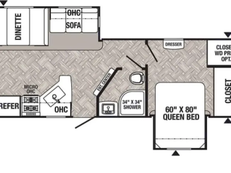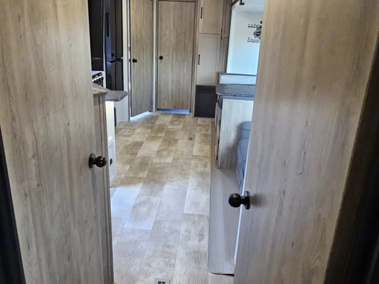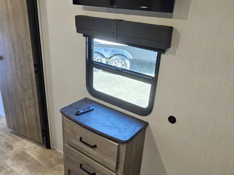 Queen bed with under-bed storageFull wardrobe and dresser spacePrivate entry to the main bathroomSpacious Bunkhouse RoomTwo bunk beds + jackknife sofaLarge wardrobe & entertainment centerPerfect for kids or extra guests!Fully Equipped Kitchen3-burner gas stove with ovenResidential-style refrigeratorMicrowave & deep farmhouse sinkPlenty of cabinet storageLiving & Dining AreaComfortable sofa & booth dinette (both convert to beds)Large entertainment center with flat-screen TV & Bluetooth stereoCozy fireplace for chilly nights1.5 BathroomsFull bathroom with walk-in showerHalf-bath in the bunkhouse with a private entry doorExterior Features