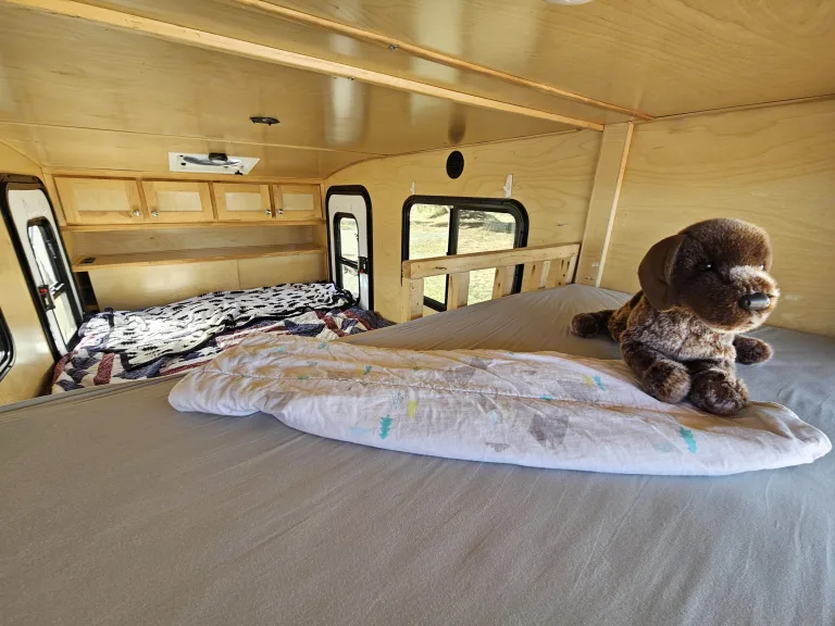 Off-Grid Camping in Teardrop Trailer With Child Bunk and Rooftop Tent