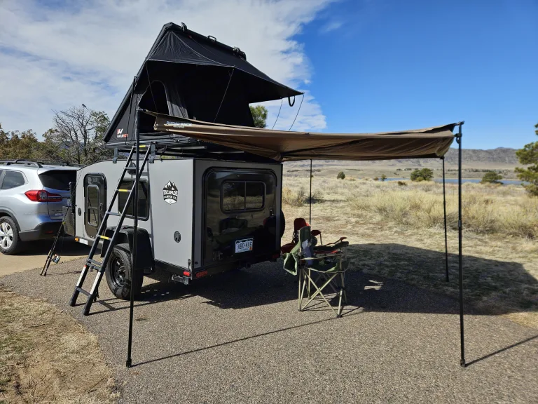 The 2018 Escapade Ridge Camper allows you to escape from the city and get into nature by camping in comfort from RV parks to off-grid camping spots. Hook up our easy-to-tow (specs below) teardrop-style trailer to your compact SUV, Subaru Outback or truck and hit the road!We love how we can detach the trailer, set up camp in minutes, and have our vehicle free for adventuring. Bring your favorite bedding and prepare for a restful night of sleep! Our camper features an upgraded, comfortable queen mattress, a top bunk with a small foam mattress that can be used for storage, your fur child, or human child. We have also recently added a brand new rooftop tent with a full-size sleeping pad that sleeps two adults.The camper is perfect for those looking to leave some creature comforts behind, as it does not have a bathroom or shower facilities. Open the windows and enjoy nature’s air conditioning while stargazing - but the battery-powered roof fan is a good backup if you need it. If it’s snuggle weather, wool blankets, and an electrical outlet for an electric heater/blanket can do the trick.Ample storage in our built-in cabinets also includes everything you need for your outdoor kitchen via a propane camp stove. (See below for the full list of included items).We think our camper is perfect for those wanting to travel light, not be hindered by towing a large RV, and have an enjoyable trip regardless of Colorado’s always interesting weather. Please feel free to reach out to us with any questions! We would be happy to discuss our trailer and your upcoming camping experience!Specifications:
