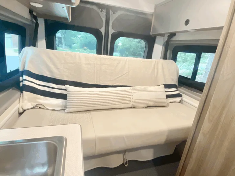 Hit the open road with Good Company. This rig is a nearly new Winnebago Solis, fully equipped with refrigerator, cook top, indoor/outdoor shower, cassette toilet, furnace/water heater system, and more.The bench seat folds down into a comfortable full size bed, or pop the top for a full size loft bed, with upgraded memory foam mattress.You'll be surprised how much storage this van provides. Kitchen is fully stocked with plates, cups, flatware and cookware. Twelve cup percolator, toaster oven, blender, electric kettle and French press available upon request.Good Company has everything you need, so you can relax and focus on spending quality time with your friends and loved ones. What's included- Fresh Linens and Bedding