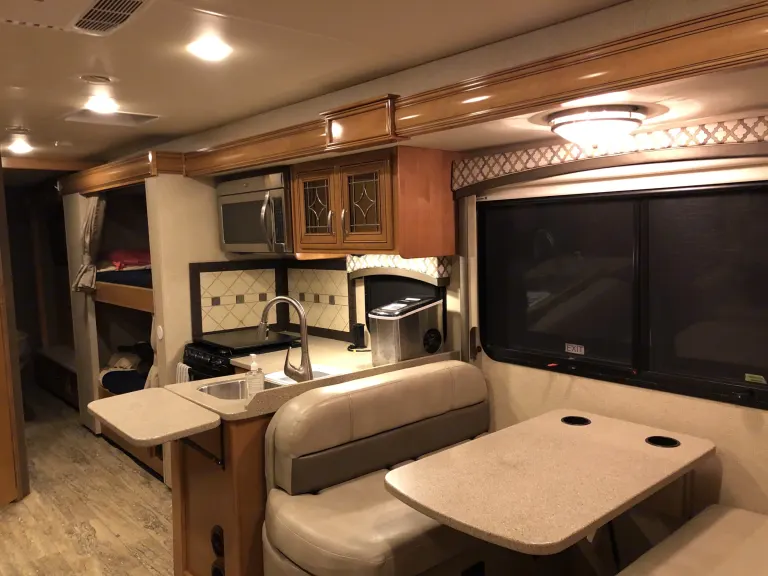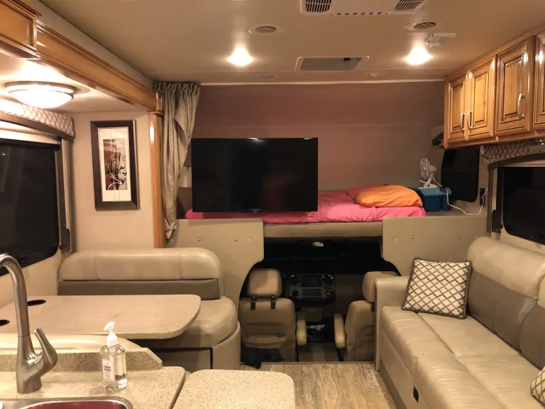 Our rig is a new to us 36 foot Super C Diesel with everything you need to make for an easy and memorable trip. Our family of 6 started out as RV renters so we know the frustrations found in a lot of rentals. This is a 50 amp rig with TWO air conditioners. We want to make sure you have everything you need but still space to store your stuff. We include cooking utensils, paper products, movie library, board games, camping chairs, basic cooking supplies (condiments, spices, oil, etc.), blankets, towels, and sheets. Our RV has an outdoor TV, large awning and outdoor kitchen with blackstone grill. We also provided a portable fire pit and starter bundle of wood. This RV drives like dream with a wider stance and more headroom than your typical class C. Kids will love the bunk beds with individual TVs/DVD players. The master bedroom also has a TV as well as the over-the-cab bed with TV that can swing out for the dinette and couch to watch too. If you have a big family like us, the larger residential kitchen will be the stuff of dreams. No more semi-frozen eggs in the fridge ;-) What's includedIncludes: Cooking utensils, dishes for 12, paper products, movie library, board games, camping chairs, basic cooking supplies (condiments, spices, oil, etc.), blankets, towels, sheets, blackstone grill and grilling tools, portable fire pit, all the hook-ups you need. Contact us if you need delivery and/or pick up service to a local campground. We also live 20 minutes from Detroit Metro Airport. Other things to noteNo smoking. Please contact us if you are interested in bringing along your dog. We need a description of the dog (size, temperament, etc.) and reserve the right to accept or deny any dog for any reason. Please note that we do require renters to sign a supplemental rental agreement that clearly outlines acceptable use of our Motor Coach and what you are responsible for.