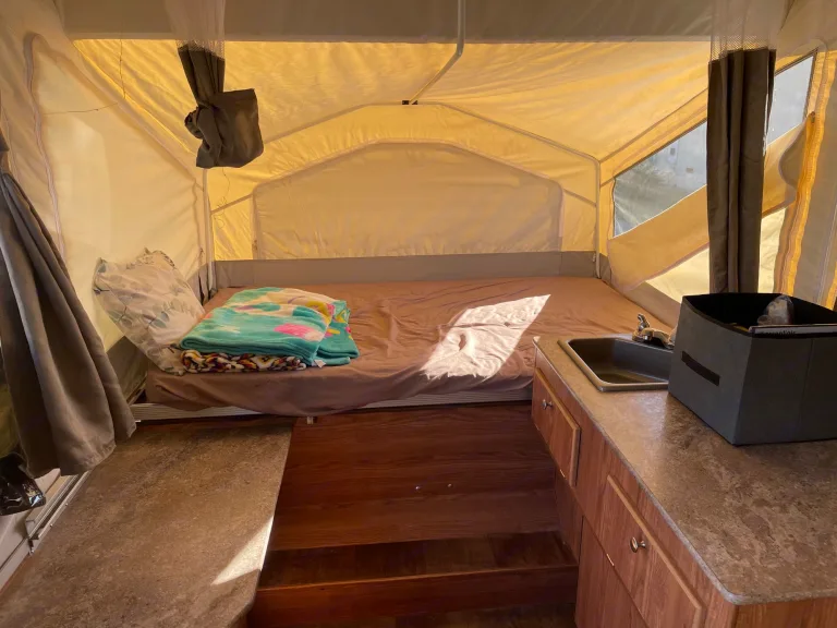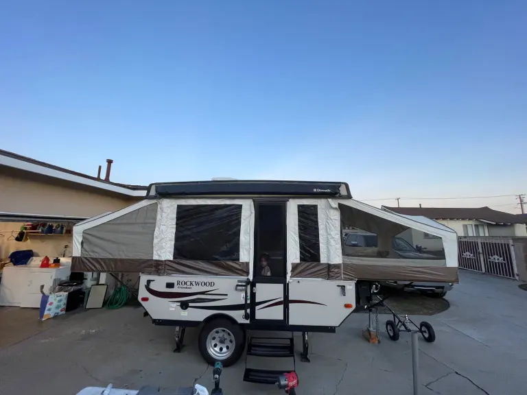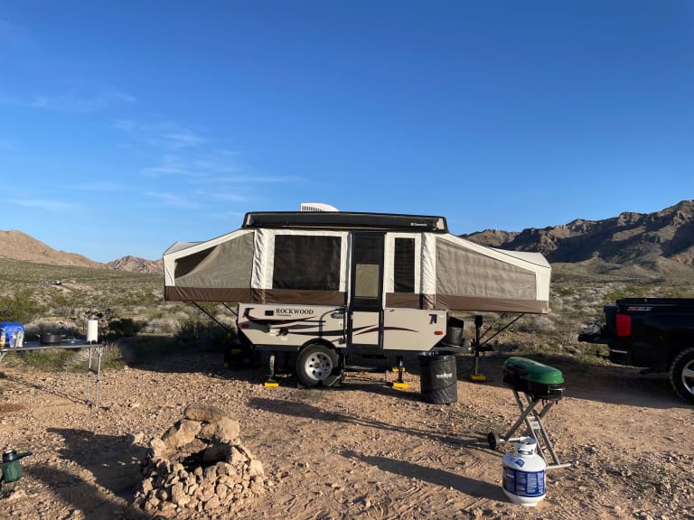 Starlight is my like new 2018 Rockwood LTD Pop-up trailer. She comes with a small fridge, Heater with digital thermostat, a/c, sink with a 11 gallon freshwater tank, queen size bed, full size bed, and a dinette that turns into a twin big enough for 2 small kids. Outdoor stove can also be used inside trailer. Super lightweight trailer I honestly can't feel when towing. I do a lot of desert camping, so this trailer does have bigger wheels and tires. Also, the trailer has a bit of a lift on it for more ground clearance.What's includedI include 4 camping chairs, small foldable table, utensils, roll of paper tows, Toilet paper, an emergency portable heater, fresh bed sheets for every rental. Delivery and set up available upon request. flexible pick up and drop off times. Generator is available for rent single charge Unlimitied hrs.This is my camping trailer so everything inside is available to use at no extra charge. Other things to noteFestivals are ok