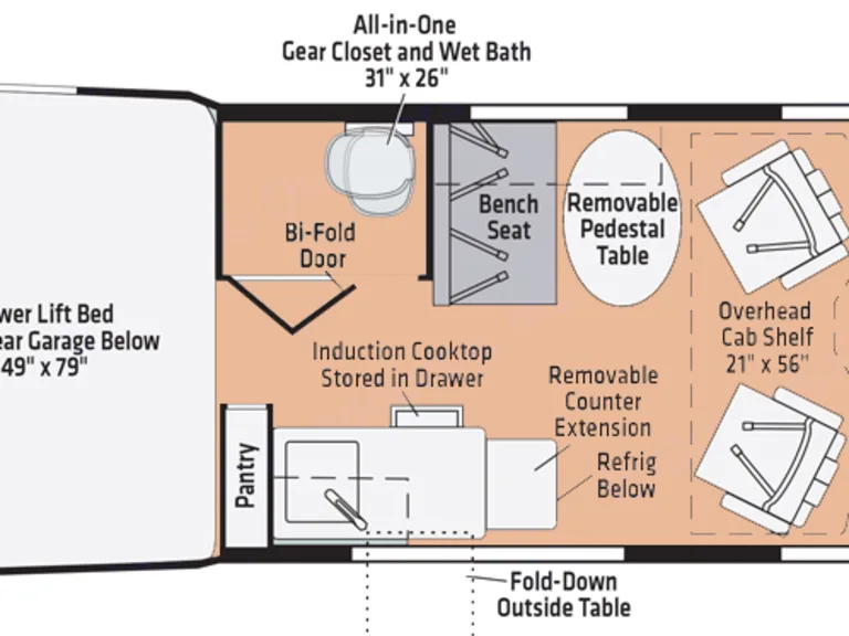 • Compact and Easy to Drive: At just under 20 feet in length, the Revel Van is a breeze to drive and park, even in tight spots. Its smaller size makes it ideal for first-time RVers or anyone who prefers a more agile vehicle.