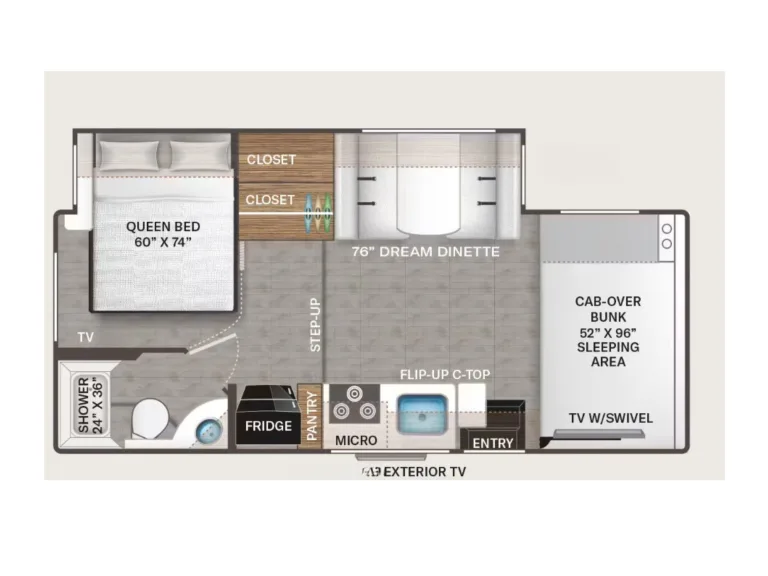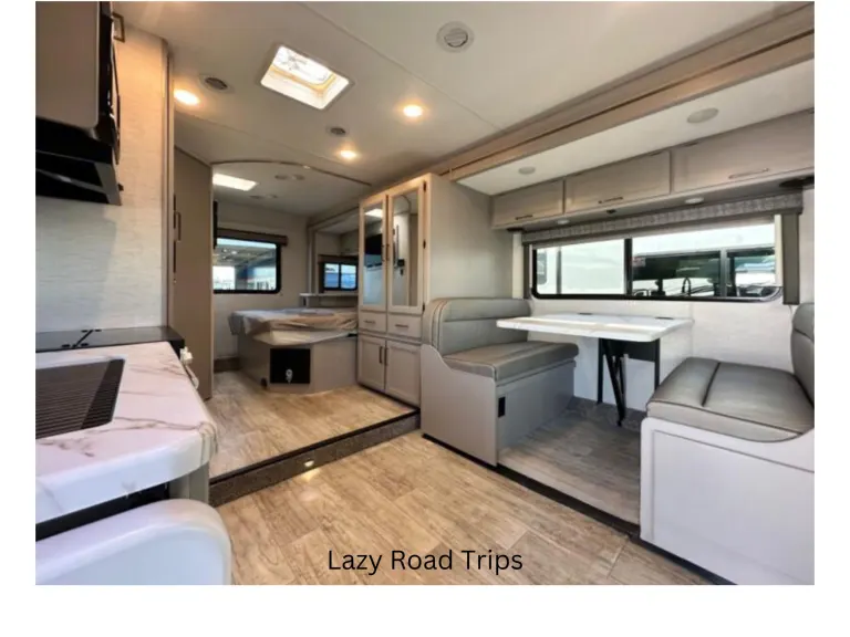 • This RV comes with: (Included)-Organic eco-friendly bedsheets, pillows, sleeping bags as needed for the dream dinette bed and the overhead cab