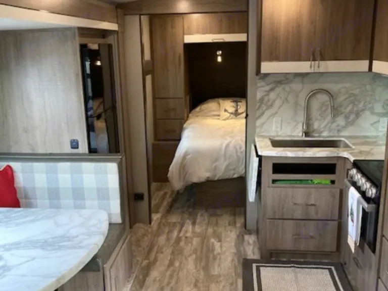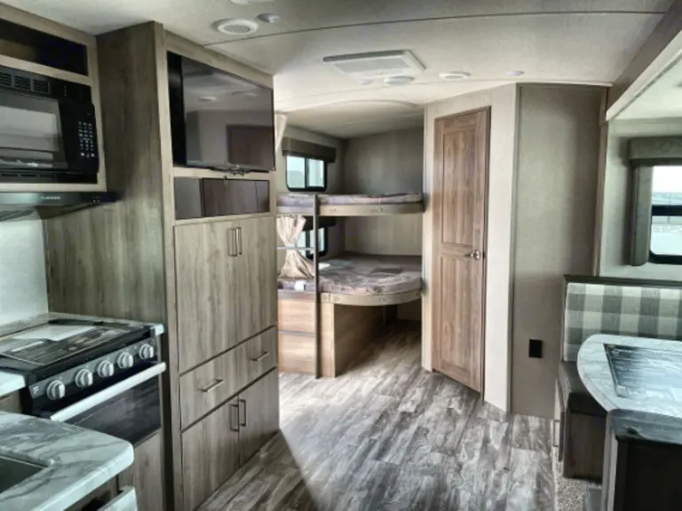 2022 luxury Grand Design travel trailer. Towable with most full size suv's or 1/2 ton pickups. Sleep comfortably in a private queen bed, and 2 full size bunk beds, Also a dinette conversion if needed! Full kitchen, bathroom, TV with antenna, large slide, lighted awning and outdoor kitchen. Comes with full linens and kitchen necessaries and camping chairs. Deliver to Estes park additional 50$ delivery feeWhat's included- Fresh Linens