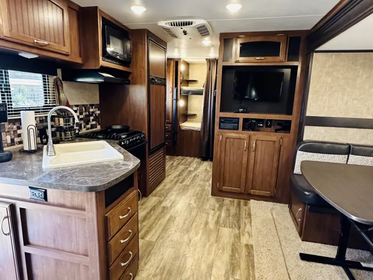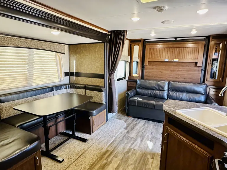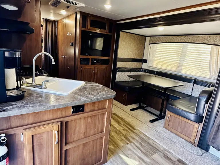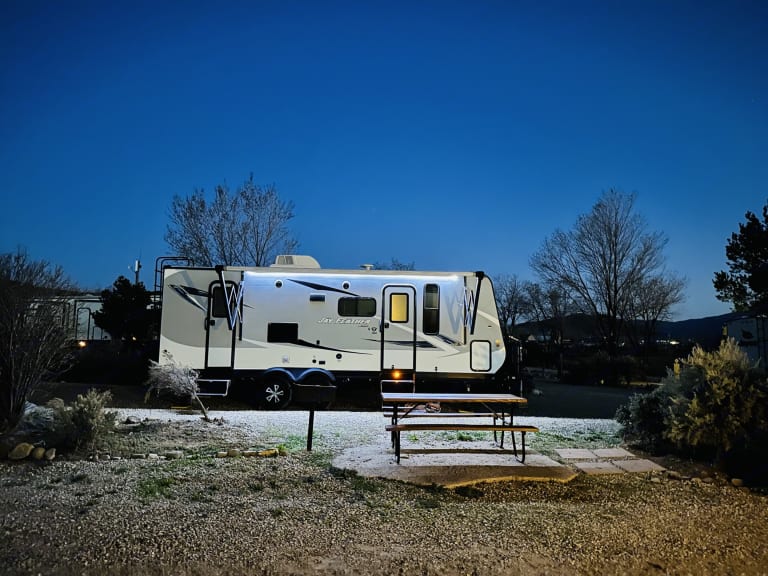 Perfect trailer for families or couples who are interested in camping luxuriously. This spacious trailer has double bunks, a comfy couch by day, and a queen size pillow top Murphy bed by night, and plenty of storage space. The dinette slide out allows for nice space inside the trailer for dinners or games, and can make a bed for two kids or small adults. There is a tv with Roku and a sound system inside. The wonderful awning, lights, and bluetooth speakers will keep you outside enjoying the weather all evening. What's includedEverything needed for a nice stay is included with the camper such as cooking utensils, coffee, toilet paper, paper towels, clean linens for the Murphy bed, and towels. RecommendationsYou might want to bring sleeping bags or blankets for the double bunks. We love hiking, camping, and fishing. We hope you have a wonderful time in our little home away from home. Other things to noteFor a small fee, we can deliver and setup the trailer at your location anywhere in Lubbock or at a nearby lake. All you will have to do is show up and relax.If you choose to tow the trailer yourself, please return the trailer with all tanks empty. A $50 will be applied if we have to dump the tanks.There is a two night minimum for all bookings.We take pride in our travel trailer and would like to keep it in good condition, allowing for more families to enjoy it!