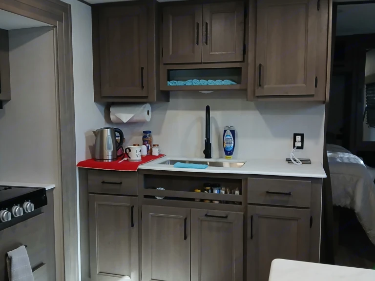 This RV is ready and ideal for spending time and making memories with the family, just like my wife and I did. It's a 30-foot-long 2025 RV. It has a queen-size bed, two bunk beds, and two more spaces for two more people (to sleep separately). The bathroom has hot water, RV-specific toilet paper, three towels, small shampoo, and body soap. A spacious and modern refrigerator includes a freezer, a four-burner stove, and a microwave on top. Everything you need to cook and enjoy your favorite dish is included, which you can prepare in the RV as if you were at home. It has an easy-to-connect outdoor grill and a small refrigerator to store your favorite beverage without having to enter the RV. The warehouse has 4 folding chairs, 2 large mats to put in the entrance, a folding table (we have a disc for preparing food outside and an iron; this must be requested in advance and for an extra charge). Trash bags, dish soap, aluminum foil, olive oil, etc., etc., are provided.