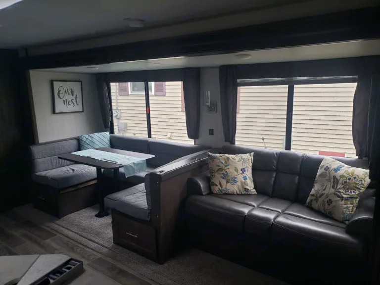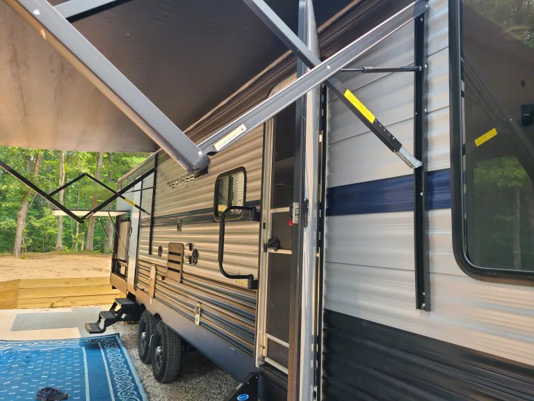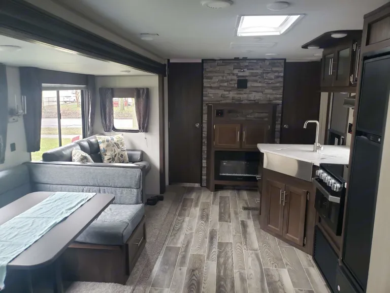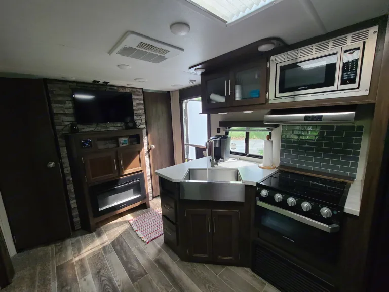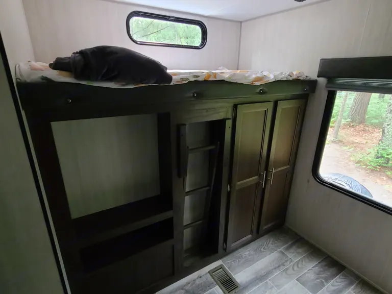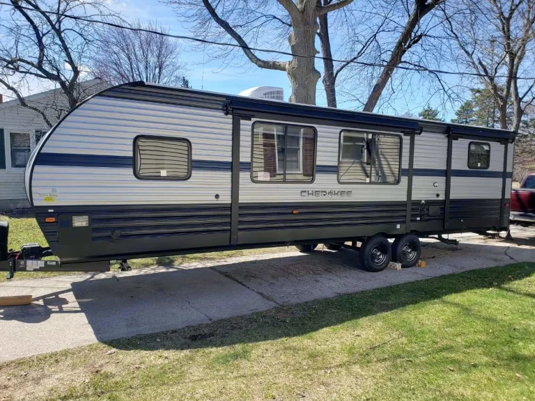 Experience Ludington in style! You will find all of the comforts of home in our Cherokee; I dare say it's not really considered "camping" more like Glamping! Our favorite feature is the outdoor kitchen. Inside you will find a private "master bedroom" with a queen bed. The living space features a fireplace, TV with firestick, fold down sofa and dinette that converts into a bed as well. There is a large pantry and plenty of cabinet space to store all of your groceries and gear. The back bunk room has a door for privacy and features 2 bunk beds and a cube sofa for lounging. You could also set up an air mattress in this room it is quite spacious!We will deliver the trailer to your campsite and hook it up so everything is ready to go upon your arrival. We are only offering delivery as an option at this time and within 20 miles of Ludington. We welcome dogs, under 90 lbs for an additional cleaning fee and ask that dogs are not left unattended in trailer unless in a kennel/crate.***State Park Booking must select an add on, $25 fee as State Parks require us to have a special permit for delivery***What's includedWe deliver the trailer to your campsite for you (see delivery fee)! We will properly hook everything up so it is ready for you to kick back and relax.**Please be sure the campsite you have booked can accommodate a trailer up to at least 35 feet.**Bed linens, 4 bath towels, hand & dish towels provided. *We do not provide pillows or beach/pool towels.*Kitchen Contents: plates, bowls, cups of all sizes, cutting boards, colander, skillets, sauce pans, silverware & cooking/serving untensils, small serving dishes, small baking sheet, casserole dish, toaster and crock pot.**We do not provide beach/pool towels or outdoor chairs**At the end of your stay we will take care of all of the unhooking, tank cleaning and remove from site.RecommendationsThe possibilities in our area are endless! There are more than a dozen campgrounds to choose from within 20 miles. Our family enjoys Stearns Park Beach and walking out to the Lighthouse on calm days. Don't miss a chance to see the S.S. Badger depart Ludington at 9AM or arrive around 6:40 PM. We enjoy watching the Badger from Waterfront Park which also has an incredible Playground. Hike at State Park or explore the Dunes there. Bring bikes and ride the 2 miles out to the Big Sauble Lighthouse!Other things to noteOur camper is smoke free, no exceptions. No vaping or smoking of any kind allowed inside our unit. We pride ourselves on offering an exceptionally clean unit and expect it to be kept that way.