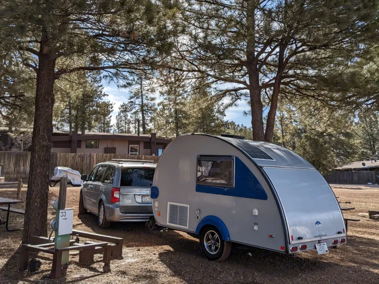 Are you looking for a tiny home on wheels with all the amenities clevely packed in? Look no further! This gem of a T@B is stocked and ready to role. It features a reading nook, small table surface, and comfy queen bed that can convert to a dinette during the day for meals or work. Ingenious cabinettry provides closet and storage space, plus a convenient pass-through feature from the kitchen.Clamshell kitchen comes stocked with everything you need to whip up an outdoor meal. Sink, gas stove, and small fridge with freezer. Includes pots, pans, knives, disposable dishware and cutlery, and a stocked pantry.Also included: cleaning supplies, handheld vac, chargeable/hand crank lantern, space heater, composting toilet, integrated ceiling fan, ac unit, wall-mounted reading lights, porch light, and stowable porch step. The windows have integrated screens and shades for light control and privacy. Set up the attachable tent to double your camping space. Emergency kit, first aid kit, and toolbox included.New to campers? This is a great unit to learn on. It's small and easy to use. Hitch and unhitch in minutes. 2900 lbs dry weight makes towing a breeze. What's includedWe provided everything you need for a relaxing trip: fresh linens and towels, camping chairs and table, disposable cutlery and dishware, a stocked pantry, roadside emergency kit, first aid kit, and toolbox. RecommendationsTake this unit to the woods, the lake, the farm, the city, across town or across timezones. It does it all!