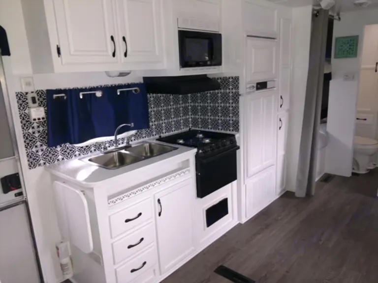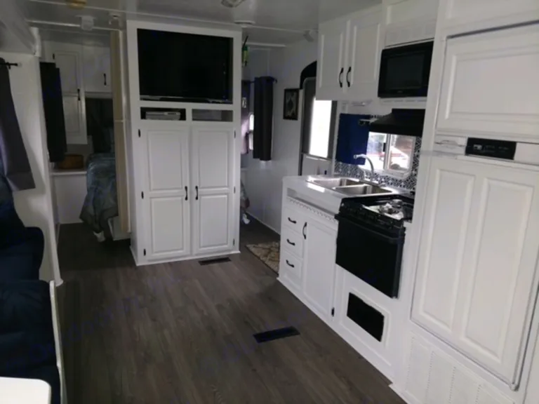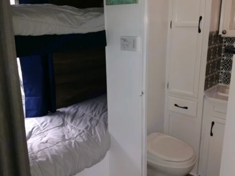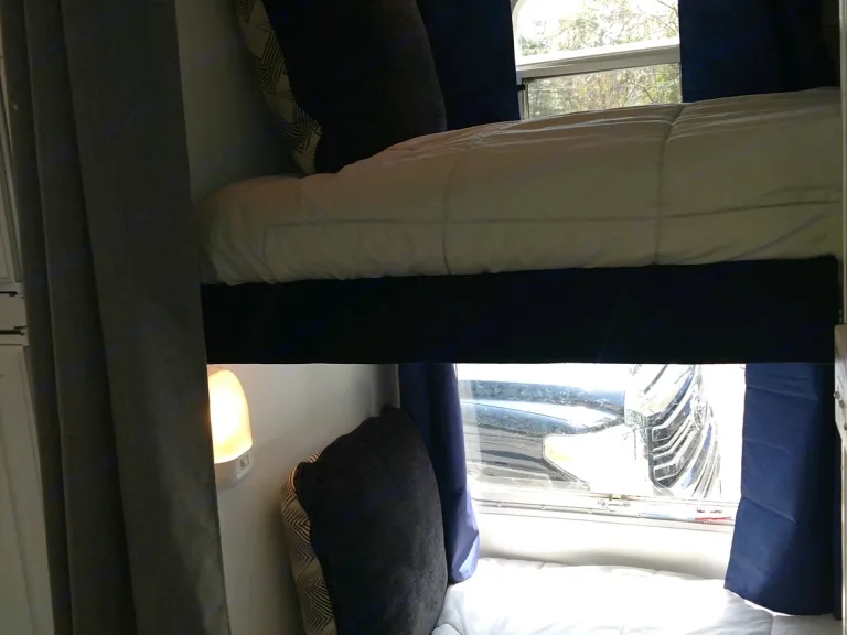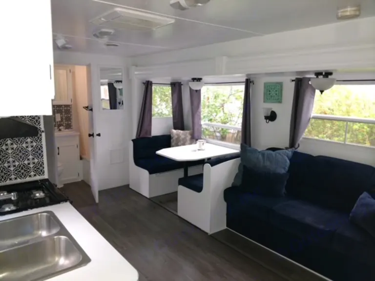 Some amenities include: A/C, heat, kitchen sink, fridge, microwave, toilet, shower/bathtub, bathroom sink, bunk beds, 3 TVs (1 is for outside), and an awning.What's includedFreshly laundered linens, camping chairs, outdoor grill, DVD player, outdoor shower, outdoor folding table, 3 TV's (1 is for outside).RecommendationsSea Pirate campground is fantastic for kids!Other things to noteNo smoking indoors please.