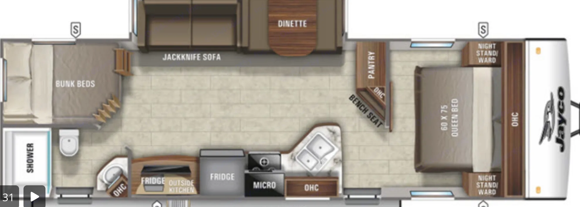 5My kids and I had a WONDERFUL rental from Leslie!!! The trailer worked out perfectly. There was so much storage space inside and outside. I was even happier to see that the RV fridge was larger than a normal RV fridge. We didn't have to keep half our groceries in a cooler. The outside fridge also helped out keeping drinks cool. The ladder on the back was very helpful in drying our bathing suits and towels. My kids loved the bunks and there were several fans for us to use....but that does not mean it was hot inside. We use them for white noise. The two ACs kept up with the 100 degree weather outside. My kids loved that at night they could watch the TV while laying in their bunks. It was an amazing rental and we would definitely rent from Leslie again!! Thank you!!!!!