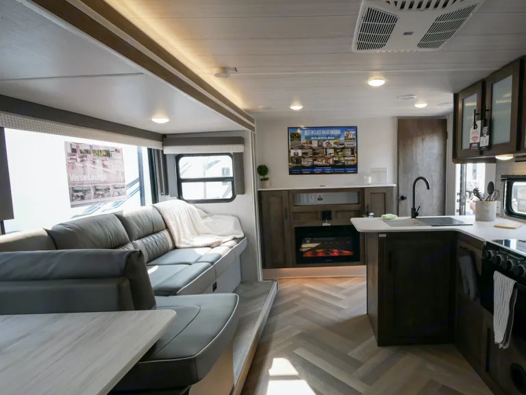 The 28Vbxl is a new rig who brings an extreme amount of versatility. The rear offers the Most versatile bunk room. The bunk room features the Versa-Bunks & Versa-Queen. This travel trailer also includes a U-dinette, Versa-Lounge, and walk-in shower. The kitchen includes an oversized 11 CU. FT. refrigerator, stovetop, oven, and pantry, Smart Tv 40 inch.What's includedThis trailers ready with all you need to have a great adventure. Pots and pans. Towels, Linen. Camping chairs and anything else you need to enjoy your time.Other things to noteNo smoking allowed. (250.00 Fee If rules is broken). We charge a small pet fee.