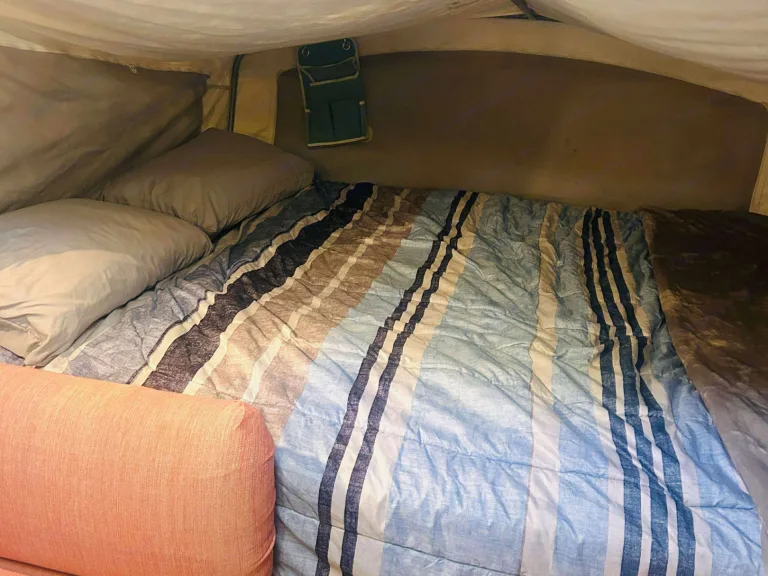 This is a Hybrid Trailer because both ends open like a tent trailer but gives lots of extra room inside and the rest is fully closed, each pop out is also Upgraded with Gekko Covers to keep it insulated and blocks out that early AM sunrise so you can get a few extra Z's!On one side is a Full Bed and the other side is the Queen bed where each have been upgraded with super soft Memory Foam Toppers. Both the Couch and Table also can be converted into small beds for lots of extra sleeping space!
