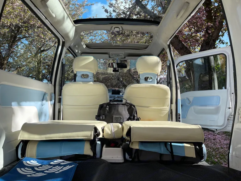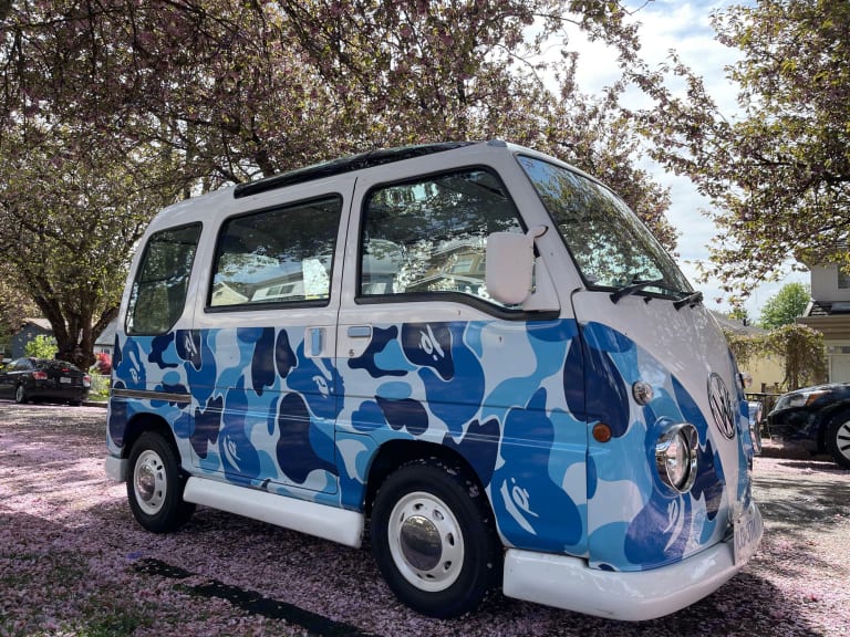 You’re not going to get anywhere fast with this van.You’re not going to be comfortable sleeping in the back.You’re going to wonder why anyone would drive a 26 year old van.You’re going to wonder why Your driving in the passenger seat!Then….when you start driving……You’re going to want to keep it for a few extra days.You’re going to be smiling the whole time.You’re going to get stares and thumbs up from absolute strangers…..young and old alike.Don’t mistaken this for something you can really go camping with…..you will not enjoy it.But you will get more stares and looks for prom night, marketing events, or just a cruise up and down yorkville.This is one of the only VW Conversion Subaru vehicles in Canada.It has a highly recognized graphic pattern for the 'in style' crowd.if you want to draw a crowd to your next event, this is what you need.If you want to be the cool kid onthe block, this is what you need.You must be 25yrs old or older to rent this van through Outdoorzy.If your parents rent this and you drive it and nothing happens, then good for you.But If there is a deficiency or any sort of damage in the return of the van, your parents will NOT get their $1000 deposit back. What's includedYou will get a full gas tank, it is 20 litres.There are 2 captain front seats.There are 2 forward folding seats in the rear.There is an updated Kenwood stereo deck with blue tooth, USB connect and hands free.RecommendationsThis is a right hand drive vehicle with automatic transmission.It takes a few minutes to acclimate to this but then it’s easy to navigate.I suggest that you have CAA roadside assistance. This is a 26 year old van. Anything can happen.Drive slow.Go up and down driveways slowly.Damages to skirting will be deducted from your deposit without hesitation.This is a very rare conversion and difficult to achieve in Canada.Go through a speed bump very slowly. Pretend like you’re driving with an open cup of hot coffee filled to the top on your lap and you’re not wearing pants. Other things to noteThis is a no-smoking and no-pet van. This rule is strictly enforced with a 500$ clean-up fee which will automatically be deducted from your deposit.