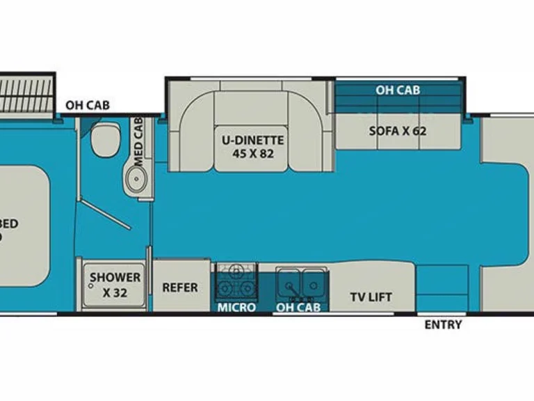 Never used an RV before? You came to the right place! From the comfort of your living space, you can see your water, propane, black and grey water levels, switch on your water pump, water heater and even your generator all in one panel.