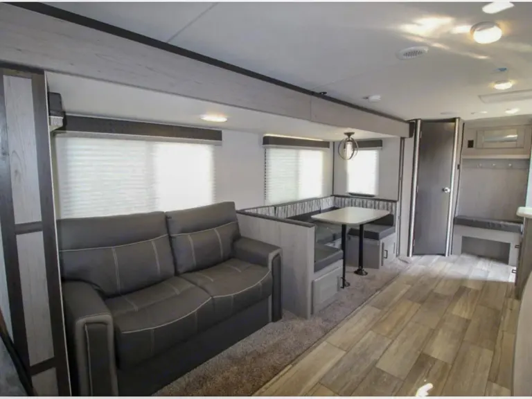 Trailer comfortably sleeps 9. We’ve got you covered with: 1 sofa bed sleeps 2, a Bunkhouse. And a master bedroom conveniently located in the Front with a king size bed. There’s room for everyone and everything. a Center kitchen with U-shaped Dinette conversation bed, Center living area and Rear bathroom. features a 3 berner stove and mini oven, Mid-Size refrigerator, and more.Its a perfect size for a couple or a large family. We are dog friendly so please let us know if your bringing your furry friend.This trailer can be towed by many half- ton pick trucks and some larger suvs or we will do all the work so you don't have to. We deliver within 80 miles and set everything up and fully running.RecommendationsLake Hemet