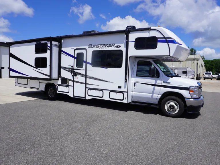 Load up the family and head out on the road in this extremely clean 2022 Sunseeker Motorhome. You wont miss much from home with all the amenities that this motorhome has inside. It's features include a private queen bedroom, multiple TV's, refrigerator, microwave, stovetop, bathroom with large shower, a sofa sleeper with a drop down bunk for the kids and a power awning. This unit provides so much interior room when you have the two slides open at your destination.