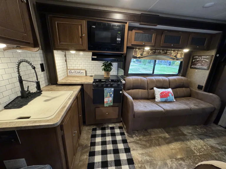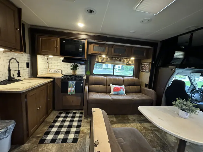 Our RV is ready for your next adventure. With plenty of sleeping and traveling space you will find that our completely loaded and ready to go house on wheels provides all you need for your trip. Our kitchen comes stocked with cookware, dishes, coffeepot, and electric skillet. Linens, pillows, and towels are not provided.You will find toilet paper, paper towels, and garbage bags to get your trip started. Cleaning supplies are available to maintain the RVs cleanliness during your trip and for your check out.We will make best efforts to ensure all items are functioning. However given that items can fail, we make no guarantee of their availability. Especially during busy seasons where there is limited maintenance time for repair. We will inform you if something may not be working prior to pick-up/delivery.What's included• Kitchen cooking utensils and eating utensils