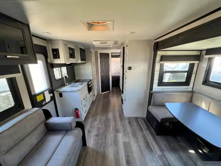 - Water capacities: fresh water (42 gallons), grey water (22.5 gallons), and black water (30.5 gallons)The rental also includes the following items:- Cooking utensils, pots/pans, dishes, cups, and silverware