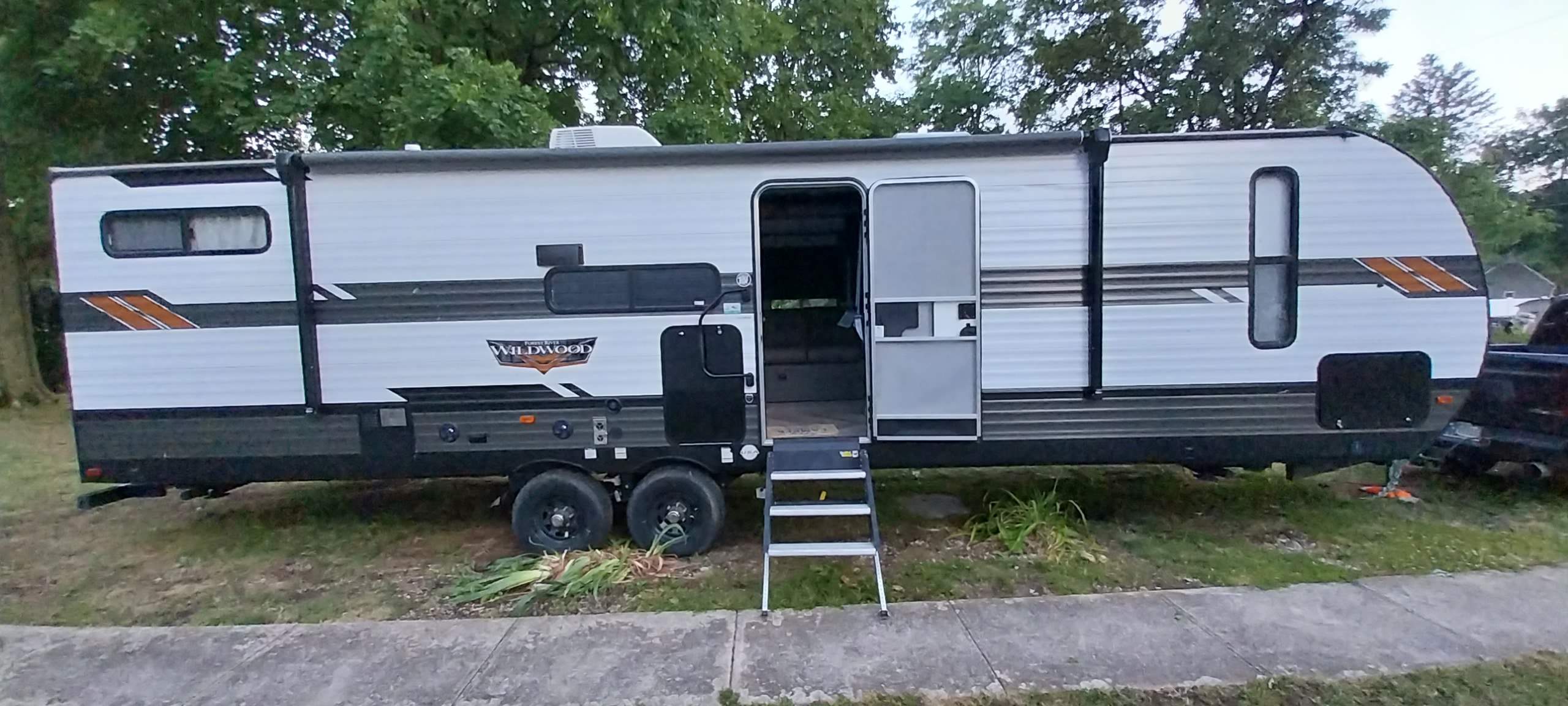 There is no better way to make memories then in a Very Nice Barely Used 2021 Forest River -Wildwood 29Vbud. It sleeps up to 10 people comfortably. The unit has 2 Bunk Beds, 1 Queen Size Bed, and 3 Sofa Beds. The Kitchen comes with a full-size refrigerator, microwave, 3 burner stove with oven, and a double sink. There is a nice U-Shaped Dinette to enjoy all those yummy meals. It also has an outdoor mini refrigerator and griddle. All you have to do is book this rental and you are ready to go camping in style (Glamping). You'll need towels, blankets, pillos, gas if you need generator. I'll sleep up 10. But I'll be $75 more per night. And you'll want a full hookup camp site so you can empty your waste tank. May want to bring paper plates paper towels. Water . Pet friendly, 420 friendly, festivals ok, tailgaters welcome.What's includedFresh linens, camping chairs, campfire grill, outdoor floor mat, leveling blocks, outdoor clothes drying rack, generator. Kayaks can also be rented. Very detailed cleaning after each use.Other things to noteNo Smoking inside the Camper