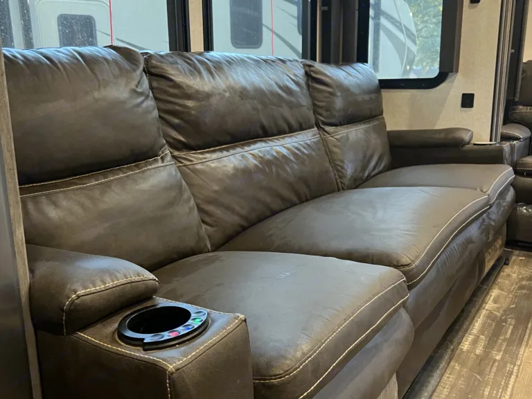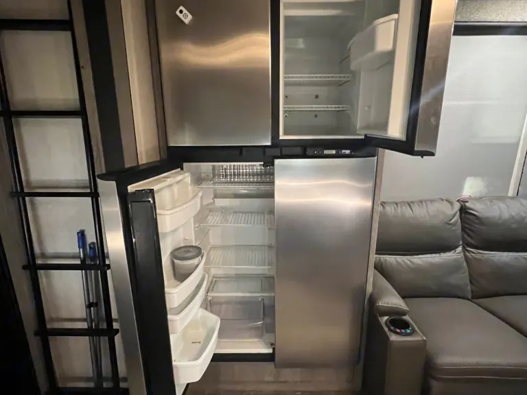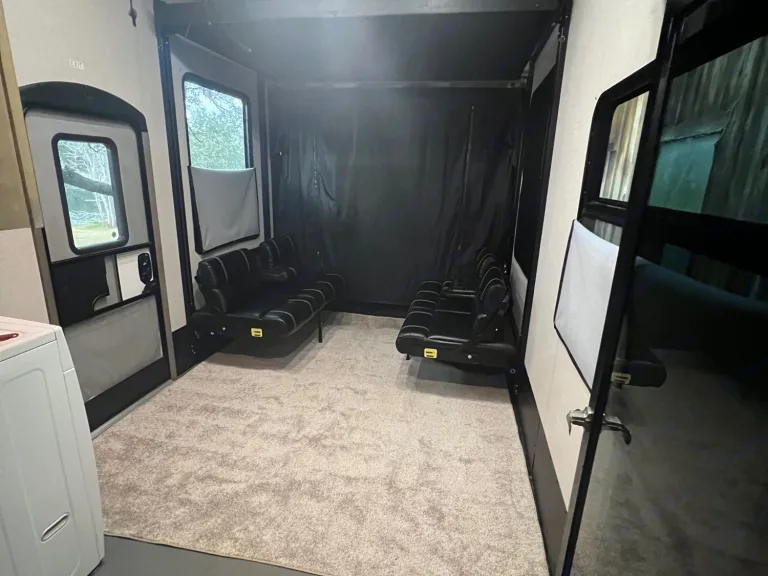 Located in Milton FL--Will NOT BE Moved>This fifth-wheel camper is a great home away from home. It's spacious, and comfortable and has all the amenities you need to make your travels enjoyable. It's equipped with a kitchen, living area, bedroom, and bathroom, as well as plenty of storage space. With modern appliances, comfortable furniture, and plenty of room for entertaining, you'll be able to enjoy a comfortable and convenient vacay. What's includedA 19' 0" awning is found on the side of this 44' 0" long Raptor. Ample room is found inside this 44' 0" long and 8' 4" wide Toy Hauler. With this 13' 6" tall Raptor, it's easy to walk in its spacious living area. By sliding out the 3 slides, the RV becomes even more spacious. Even when the weather isn't cooperating, you'll stay comfortable inside with the 35000 BTU furnace and the 15000 BTU a/c unit!
